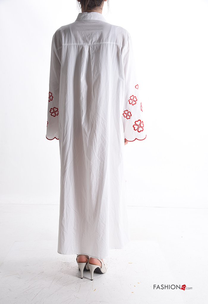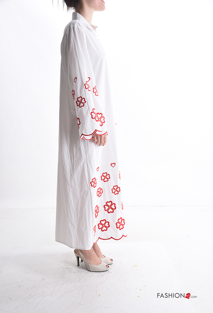 Besticktes Muster lange ärmel mit kragen Blusenkleid aus Baumwolle mit Knöpfen