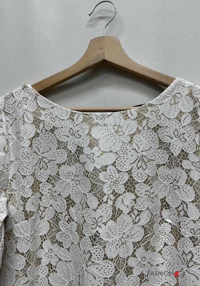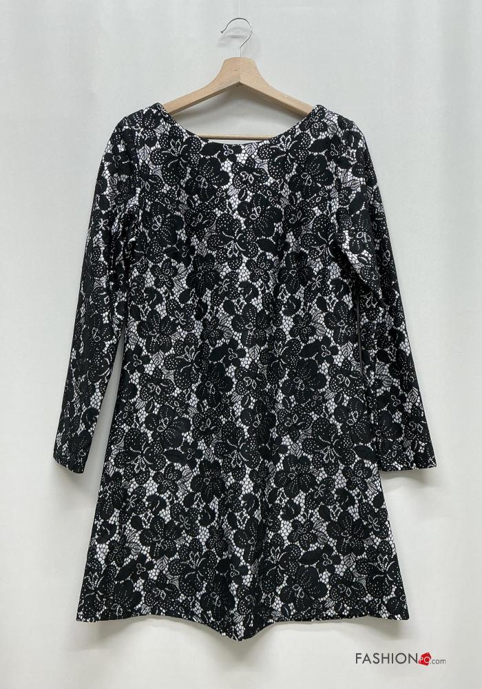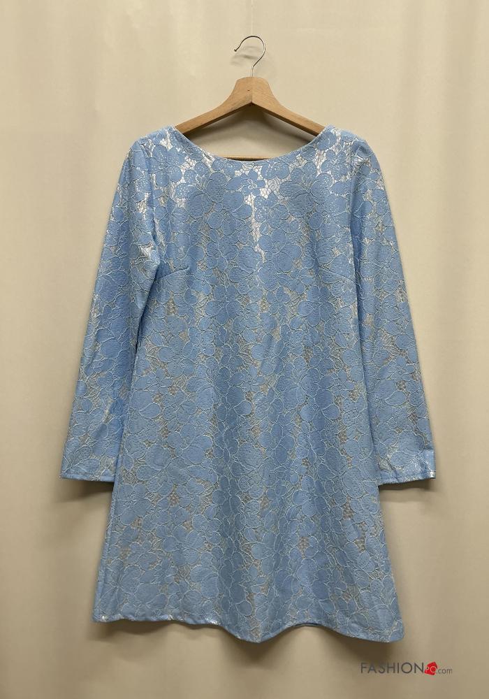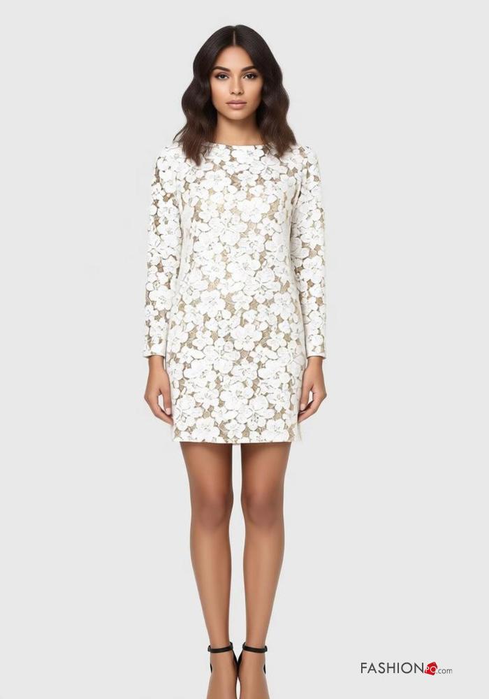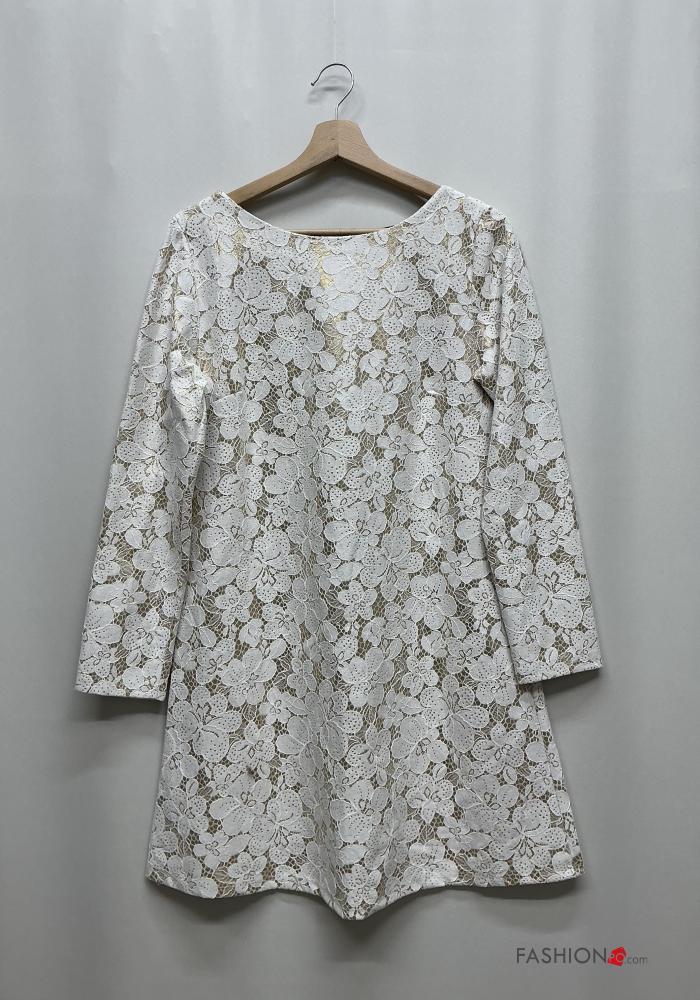 Besticktes Muster Spitze- u-boot ausschnitt rückenfrei lange ärmel Kleid aus Baumwolle mit Schleife