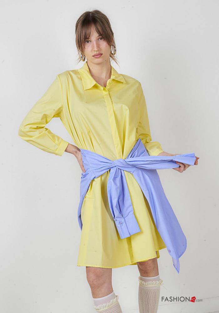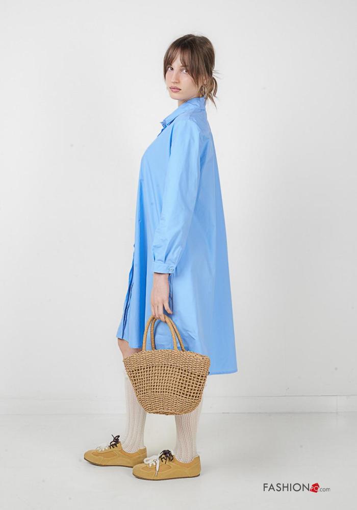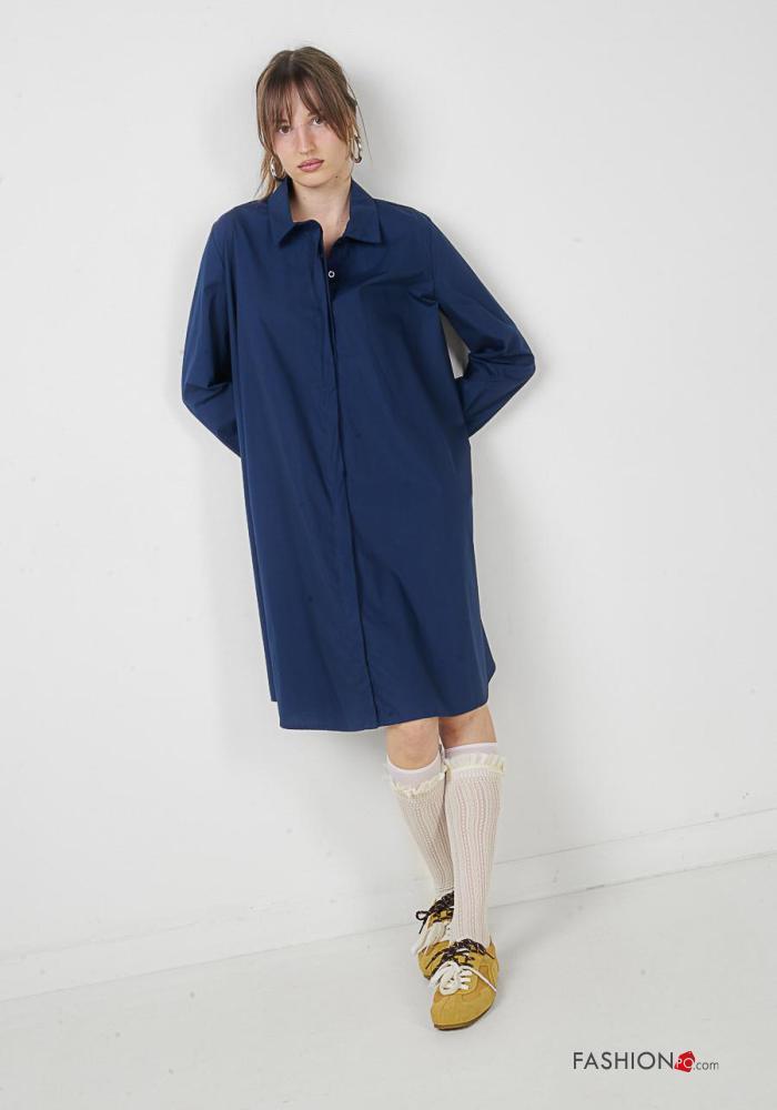 lange ärmel mit kragen knielanger Blusenkleid aus Baumwolle mit Knöpfen