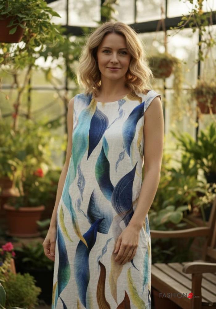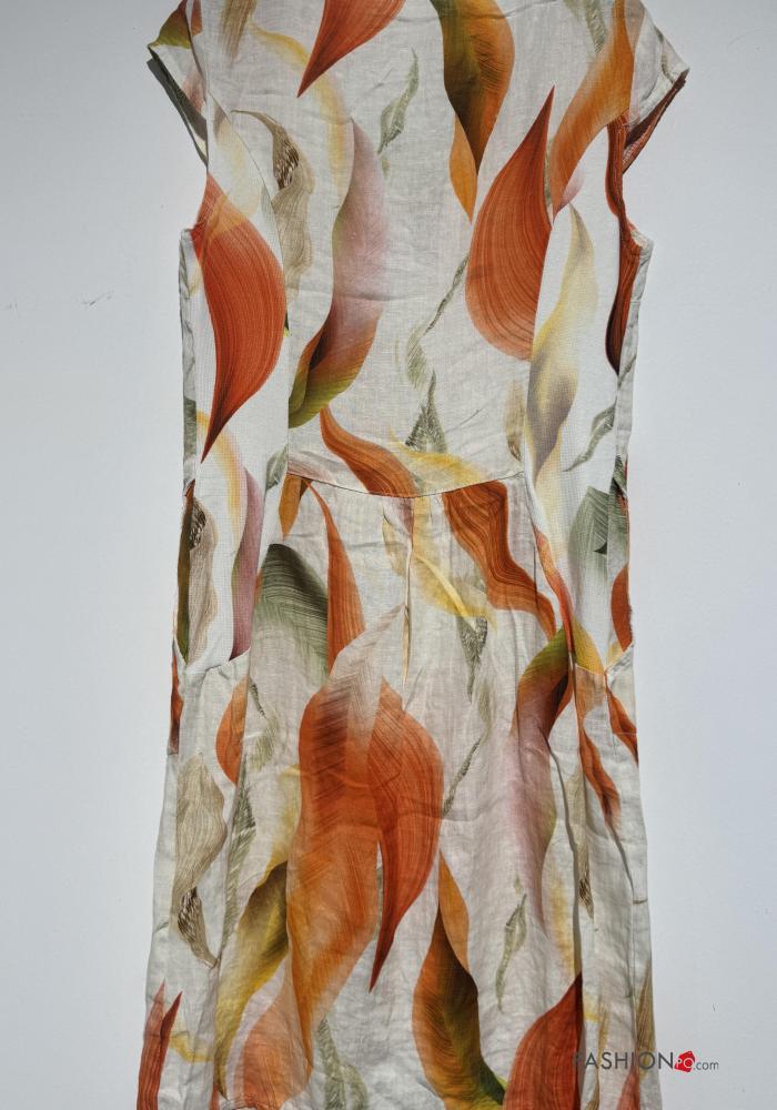 Home > Kleidung > Kleider > Abstrakte Muster kurze ärmel u-boot ausschnitt Kleid aus Leinen