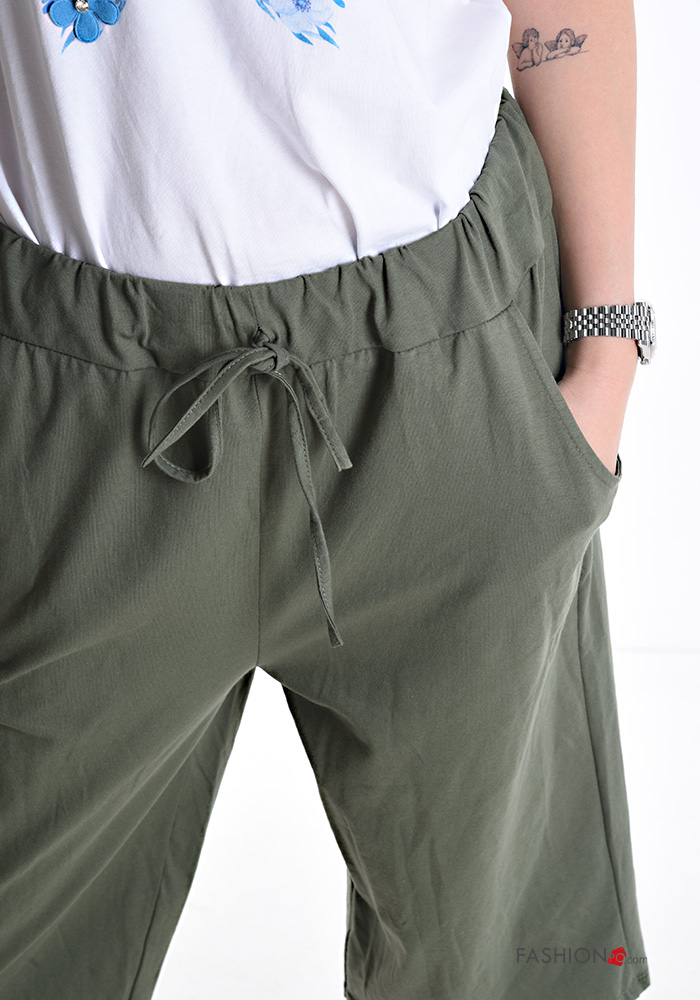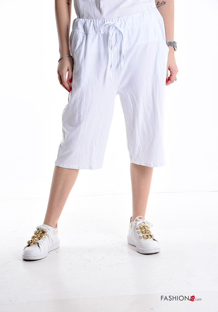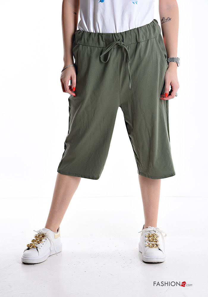Caprihose aus Baumwolle mit Taschen mit kordelzug
