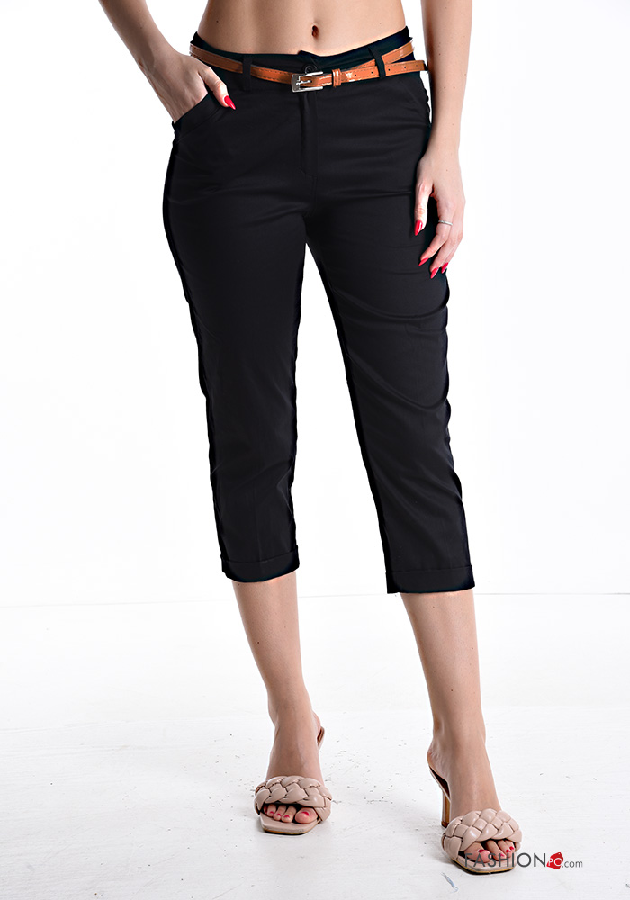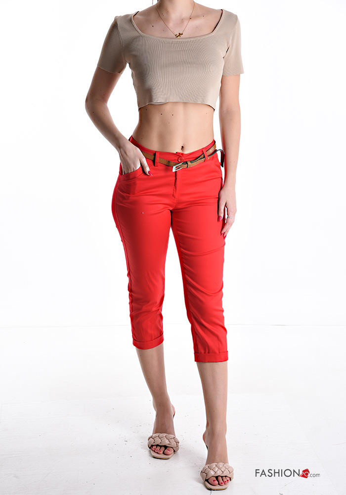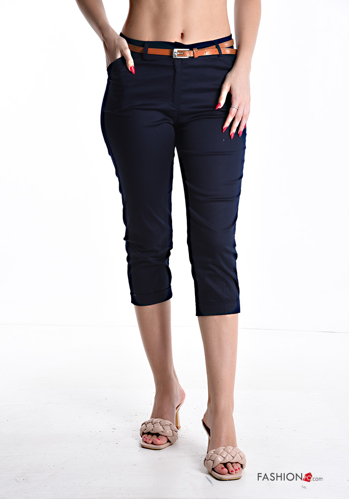skinny Caprihose aus Baumwolle mit Gürtel mit Reißverschluss mit Taschen mit Knöpfen