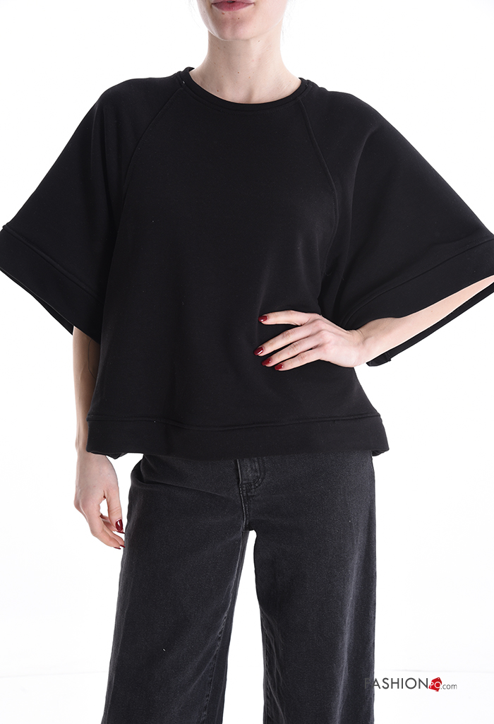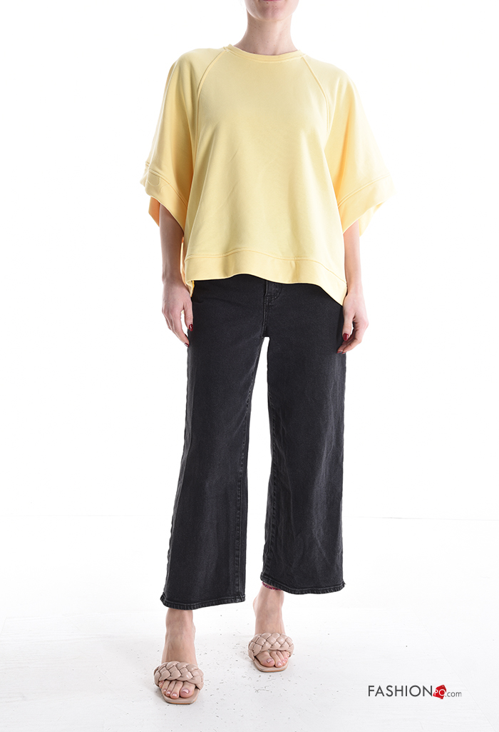 u-boot ausschnitt Sweatshirt aus Baumwolle 3/4 ärmel