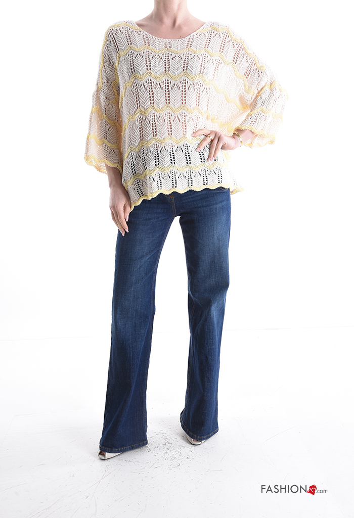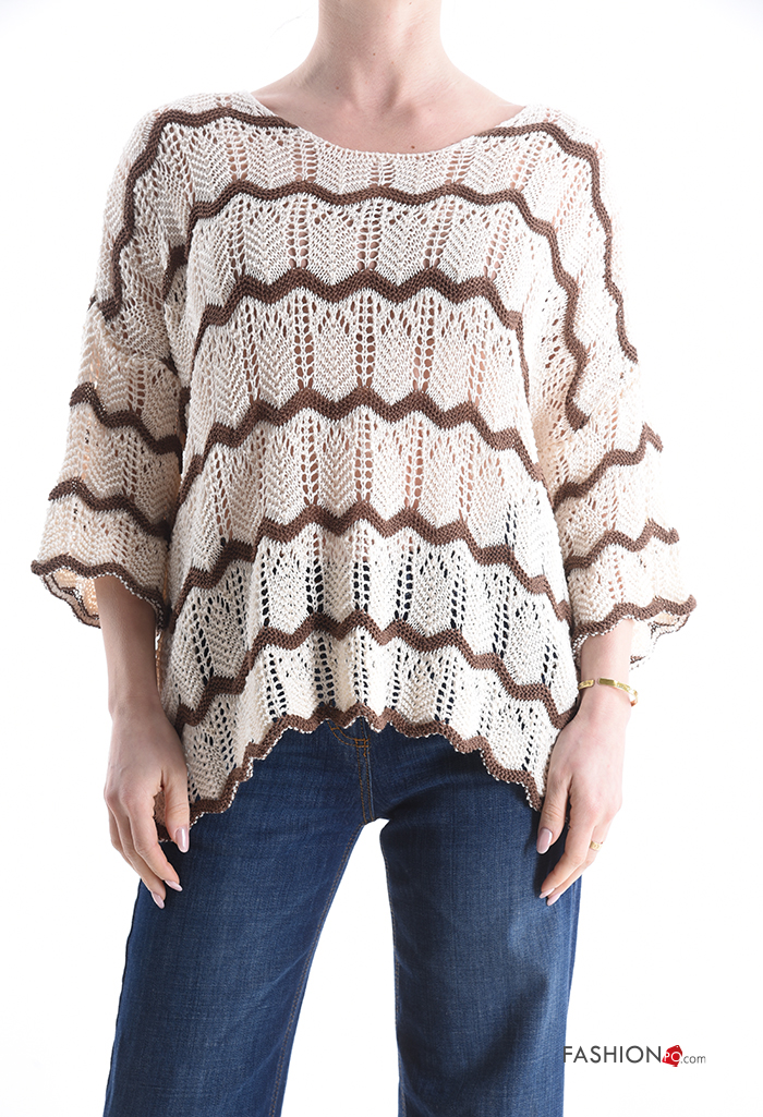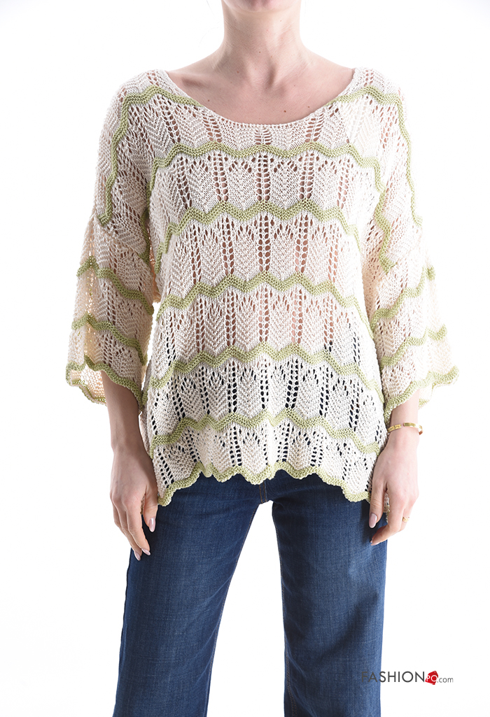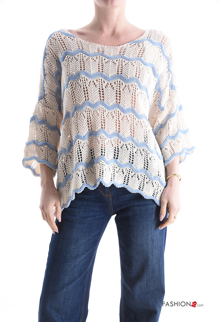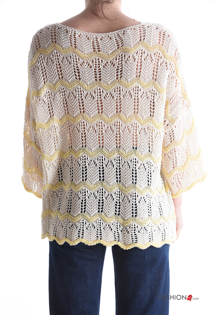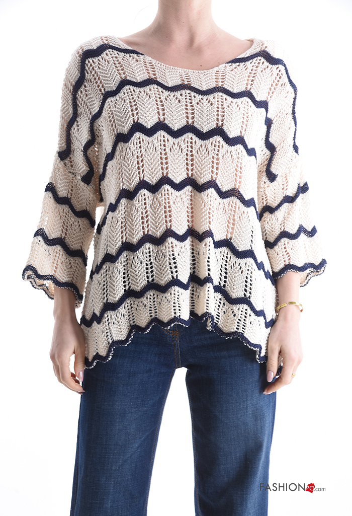 Streifenmuster Makramee u-boot ausschnitt Strickpullover aus Baumwolle