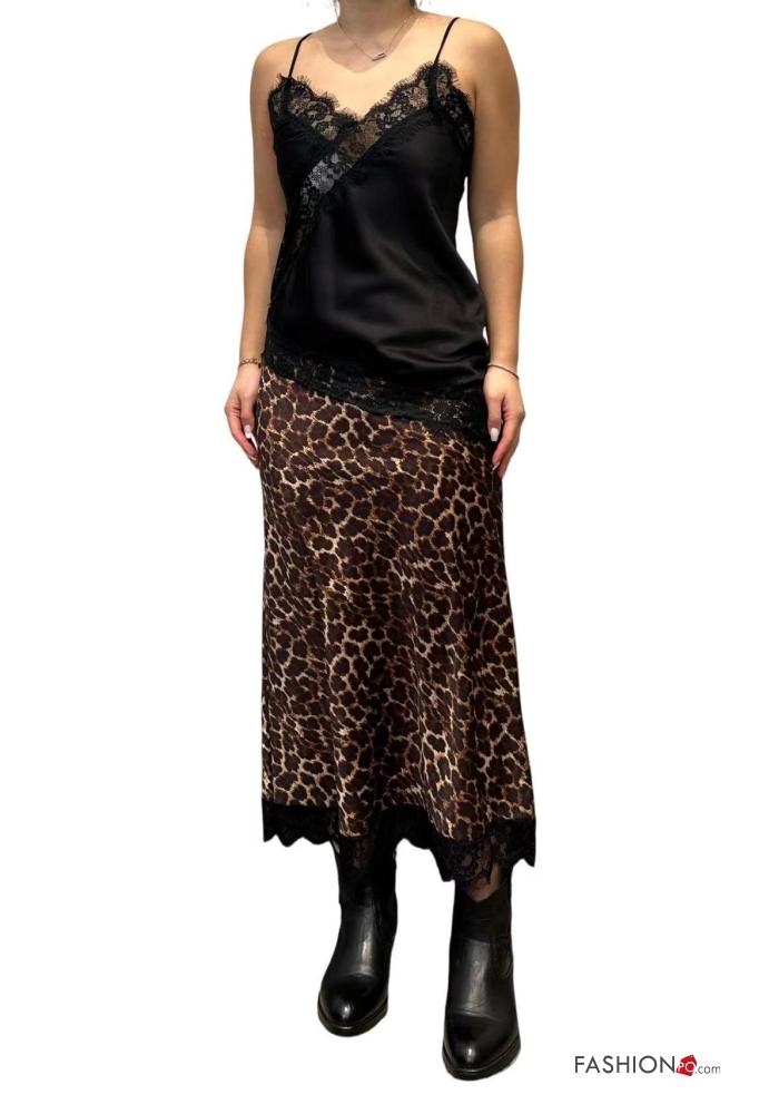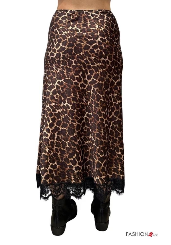 Home > Brands > ALESSIA MODA > Animal print lace trim Skirt with elastic