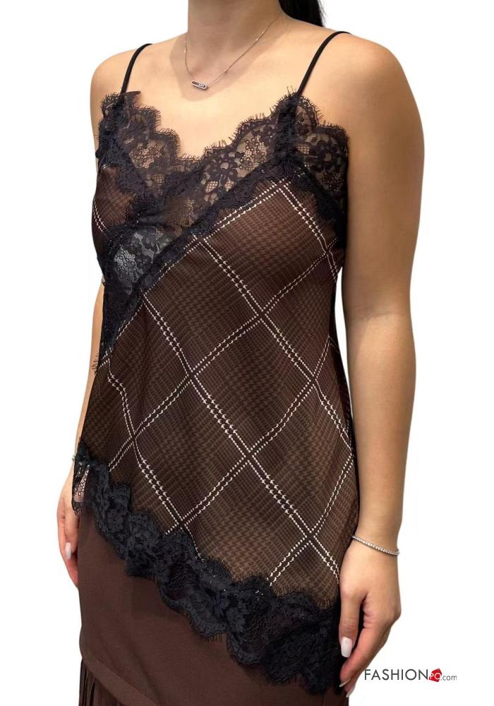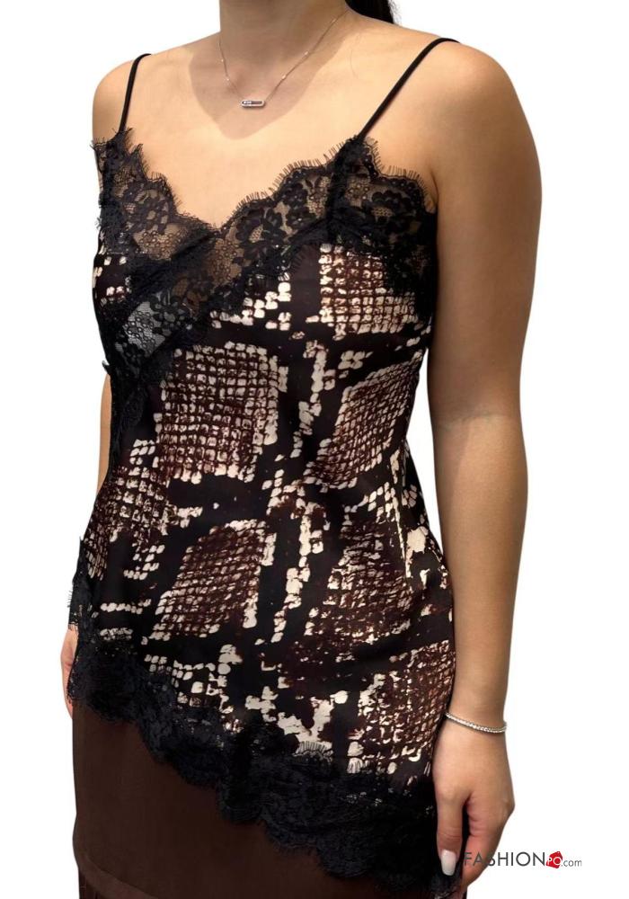 Home > Brands > ALESSIA MODA > Graphic Print asymmetrical backless lace trim Top