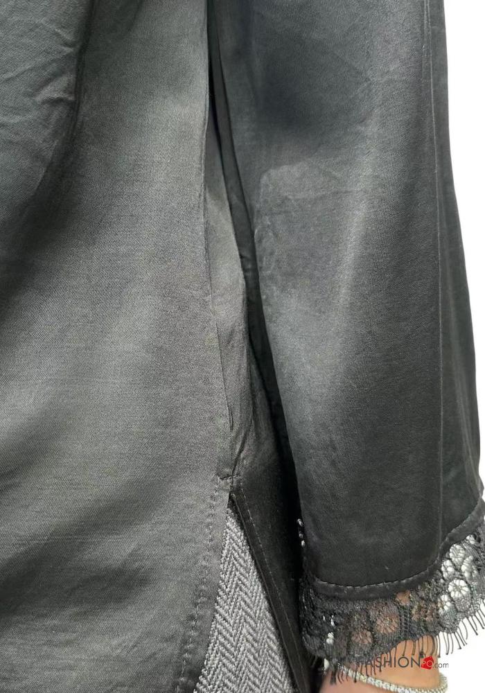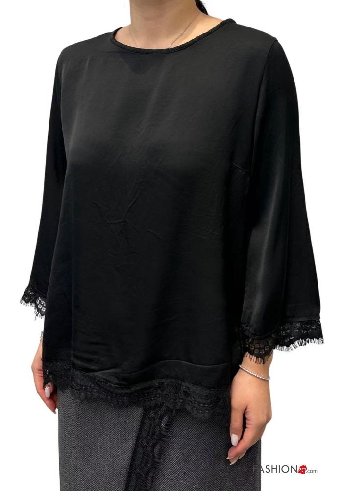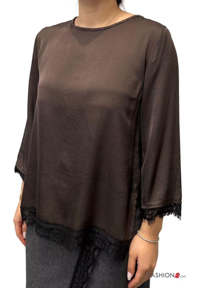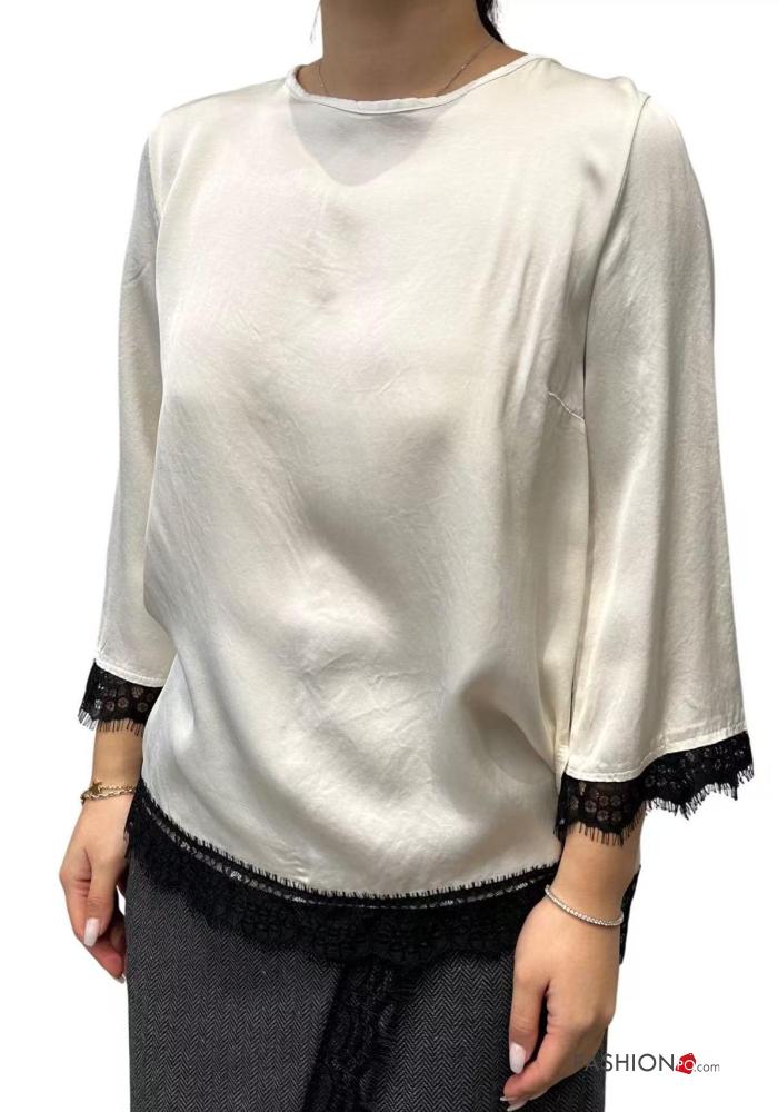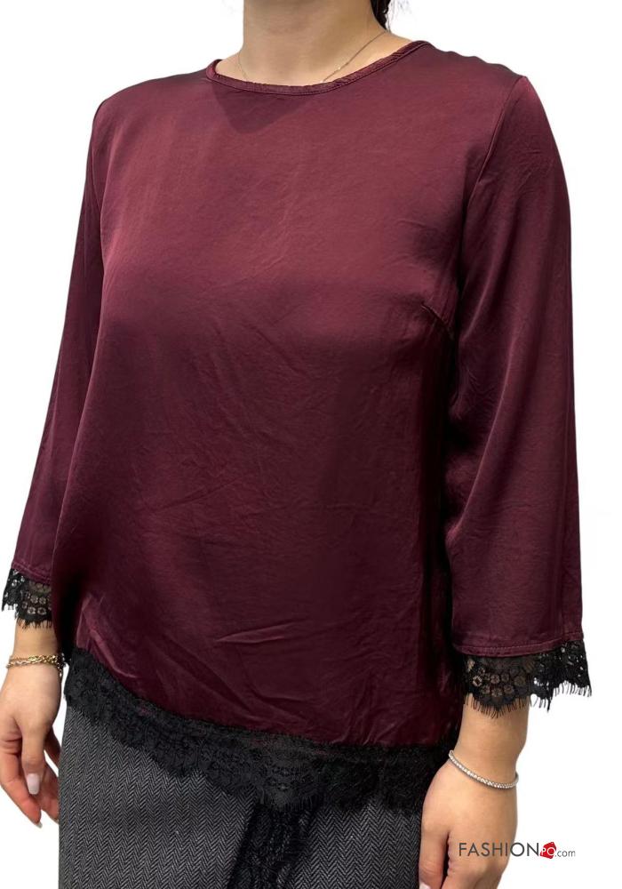 Home > Brands > ALESSIA MODA > lace trim crew neck satin Blouse 3/4 sleeve