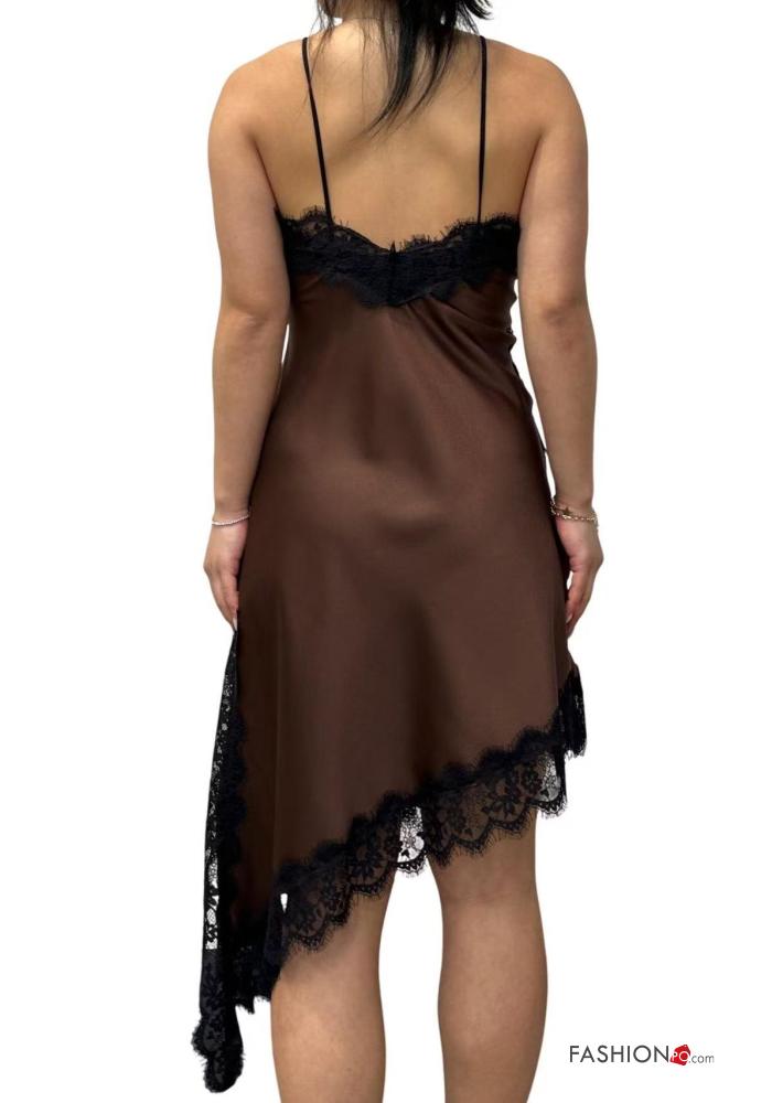 satin lace trim backless asymmetrical sleeveless Dress with split