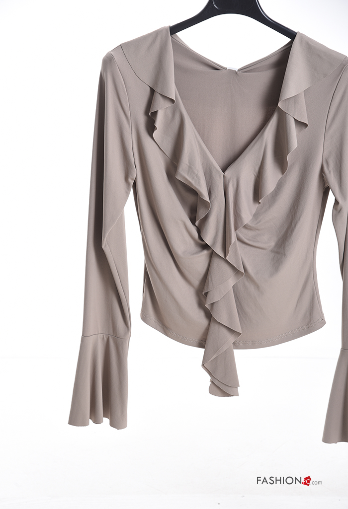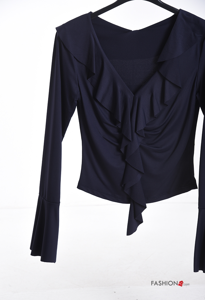 long sleeve Blouse with flounces with v-neck