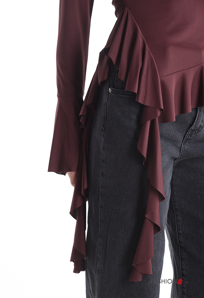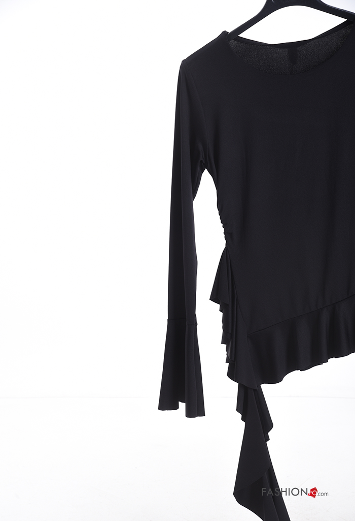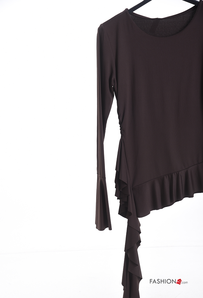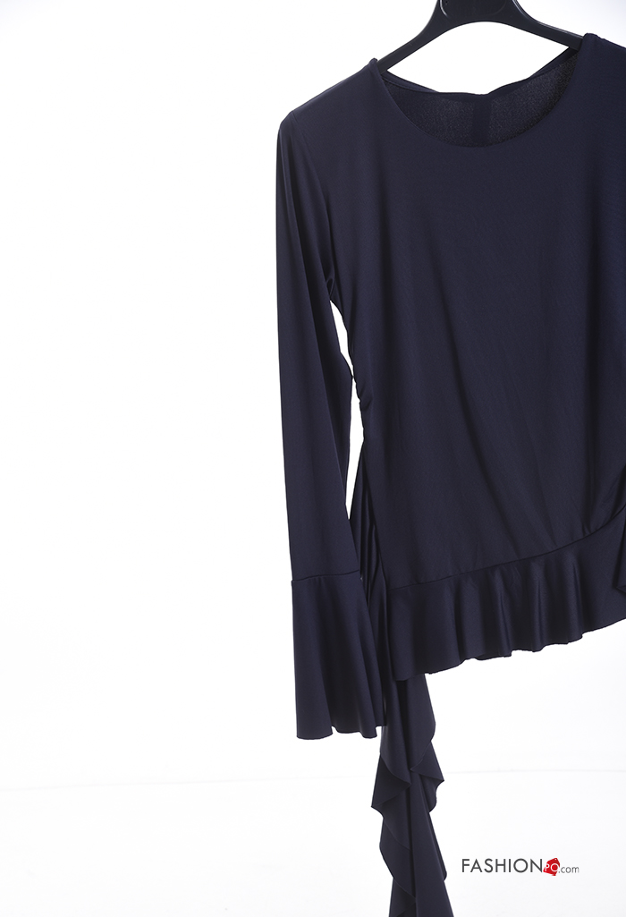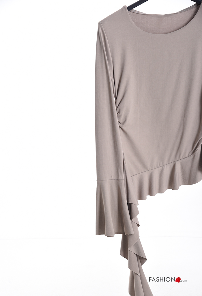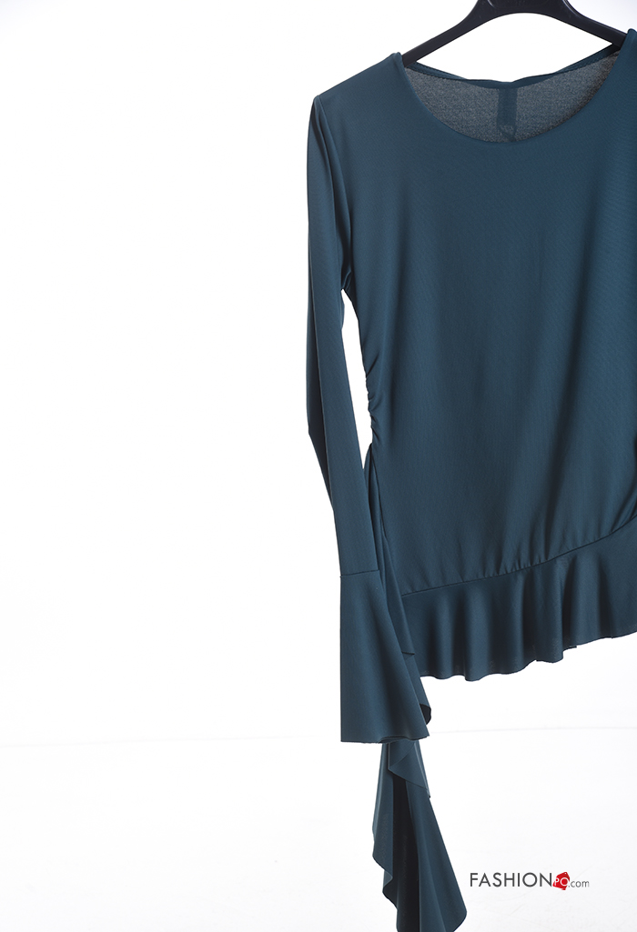 ruffle sleeve crew neck long sleeve Blouse with flounces