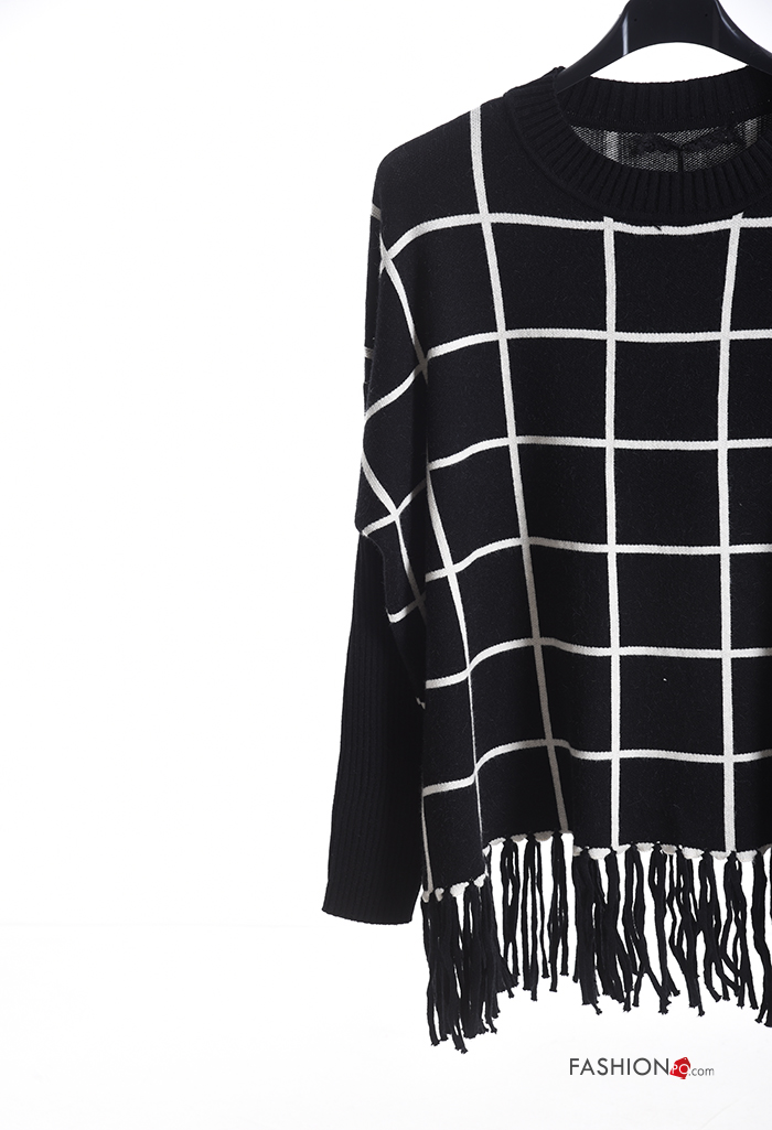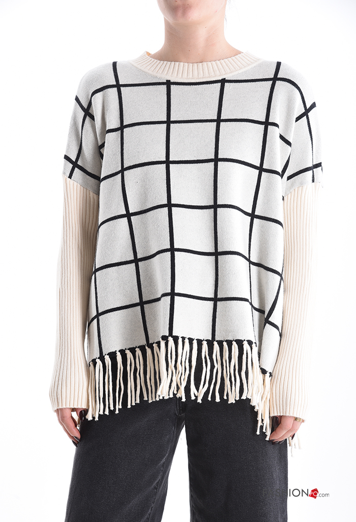 Home > Brands > ANGELA MODA > Vichy long sleeve crew neck Sweater with fringe