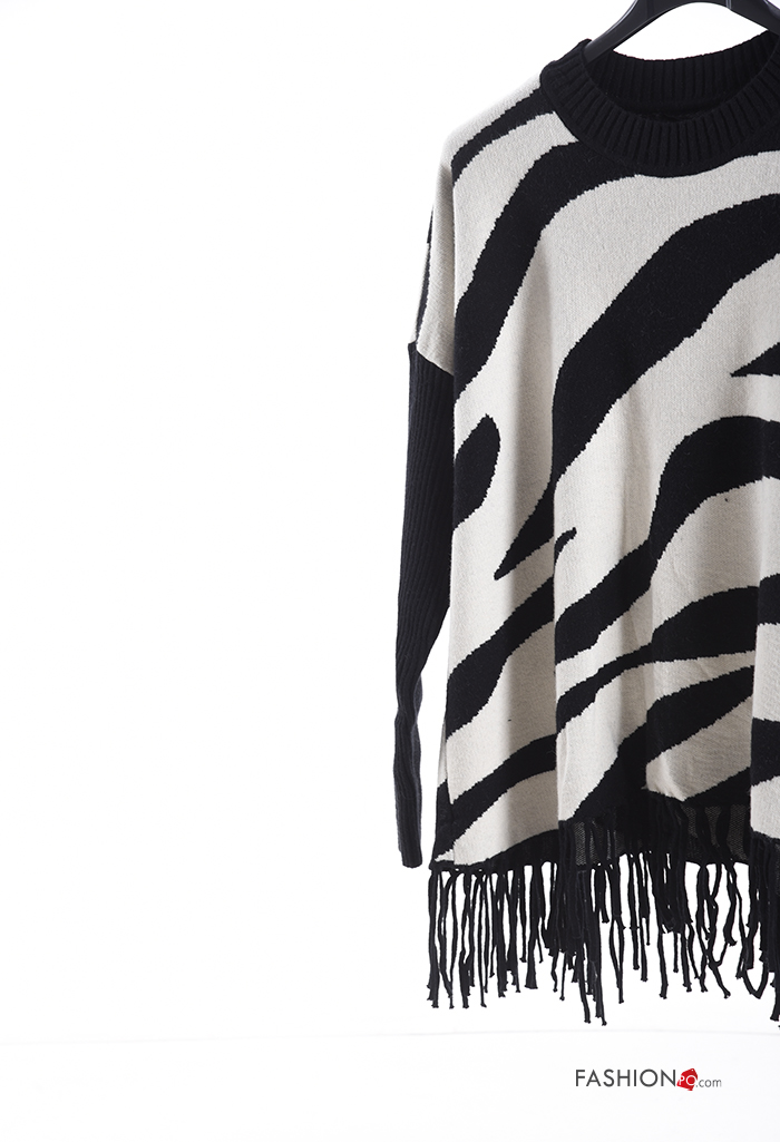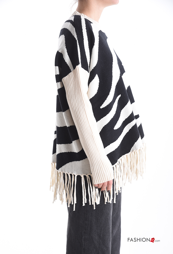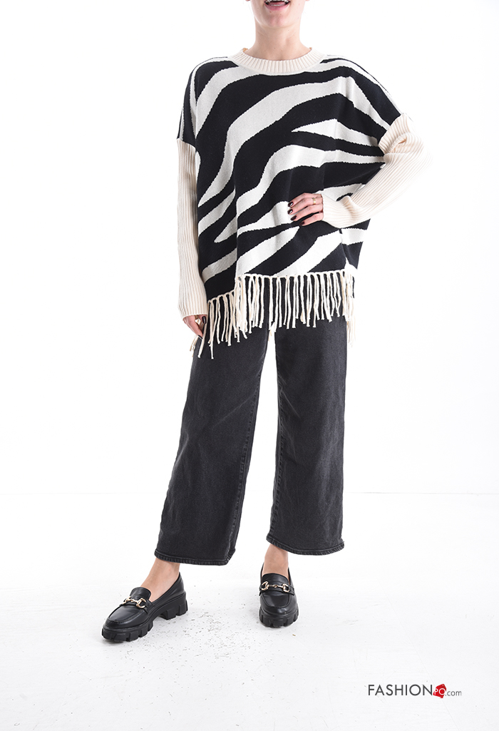 Home > Brands > ANGELA MODA > Animal print long sleeve crew neck Sweater with fringe