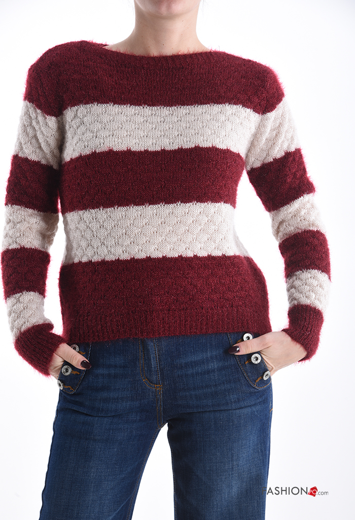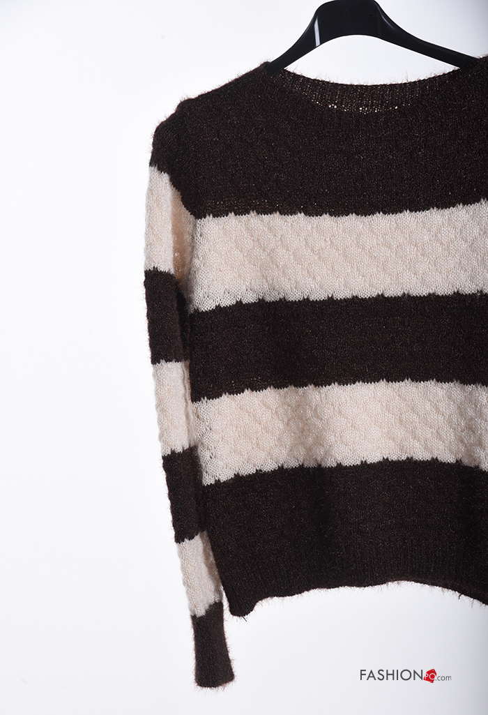 Home > Brands > ANGELA MODA > Striped long sleeve crew neck Sweater