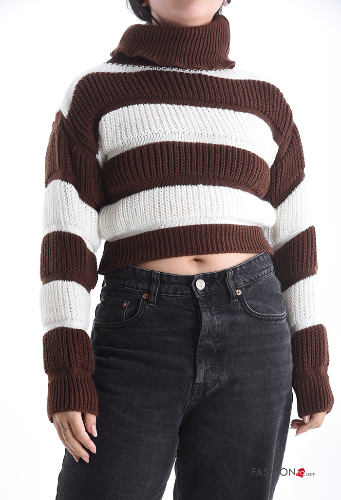Home > Brands > ANGELA MODA > Striped long sleeve mini Sweater Rollneck