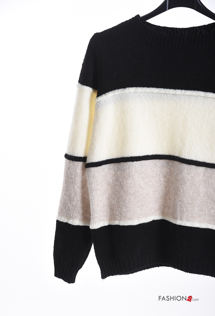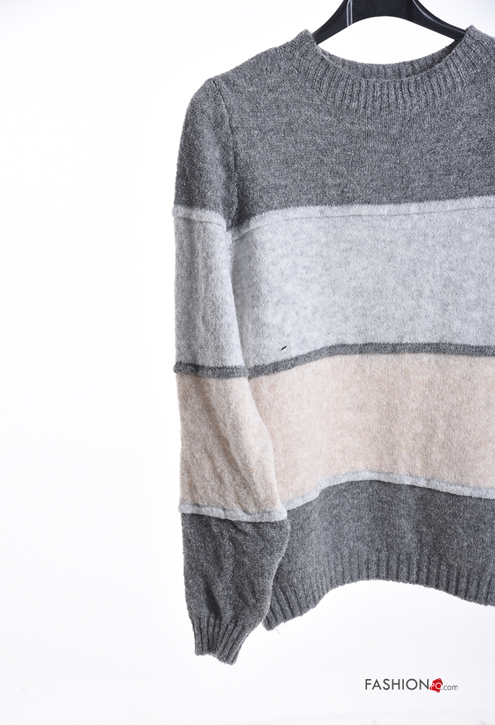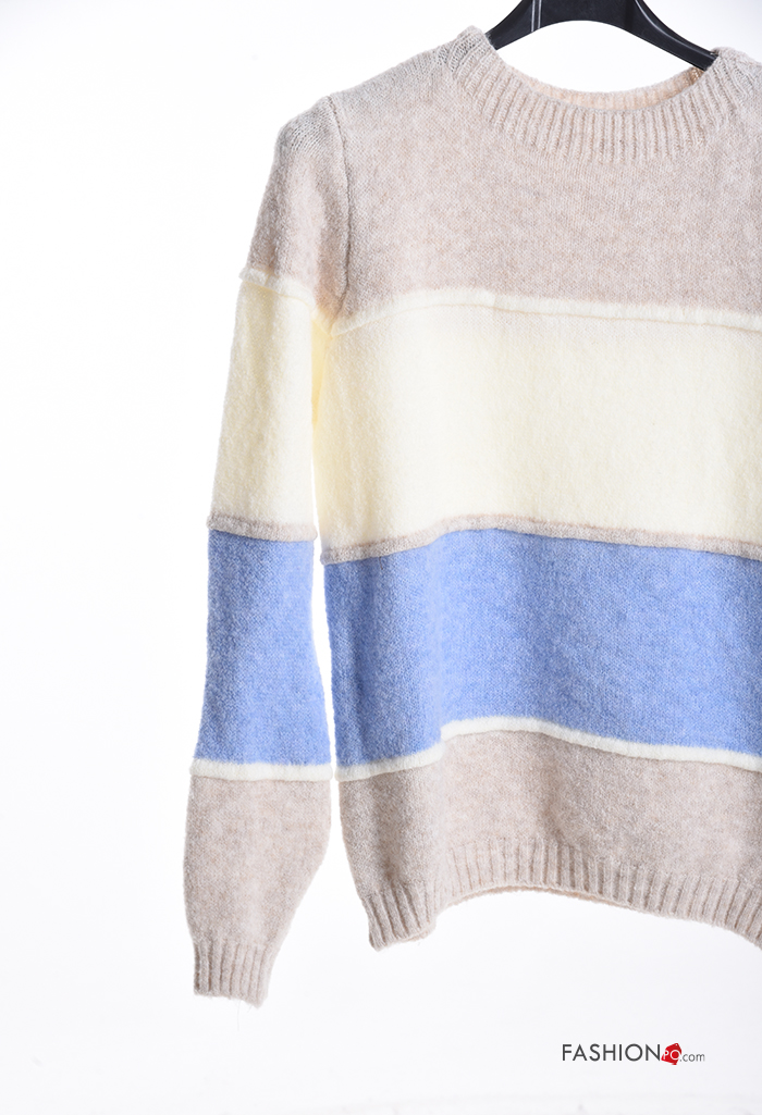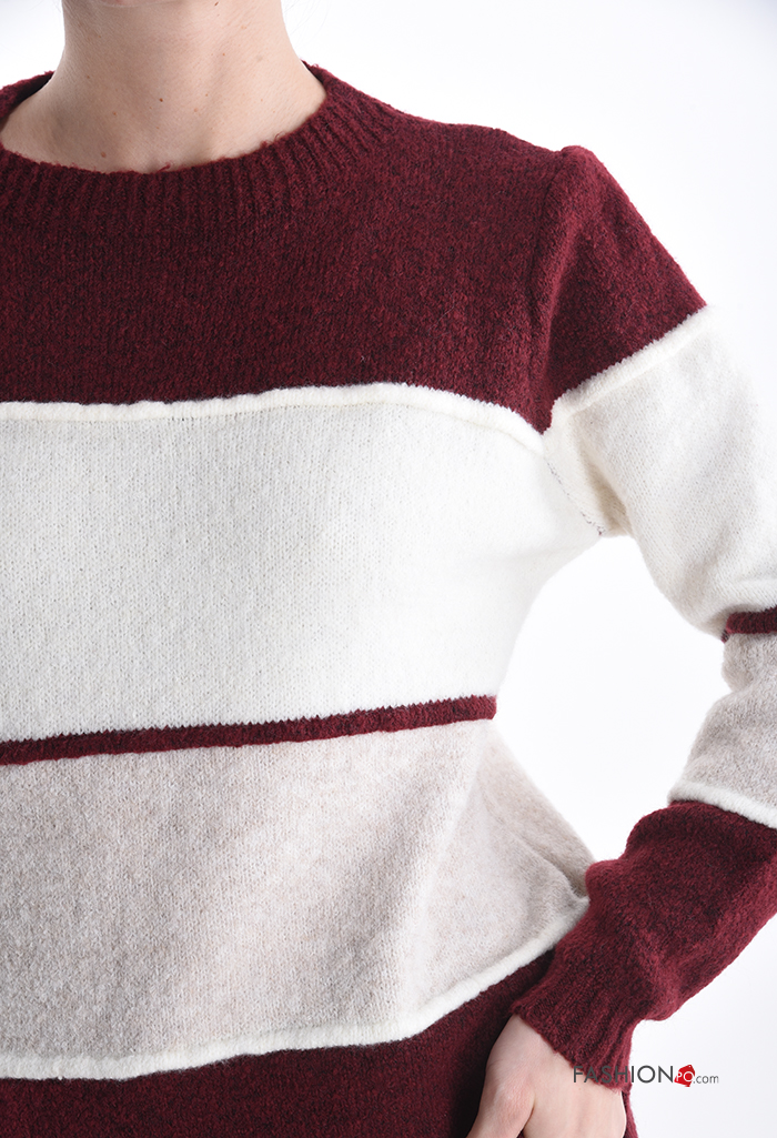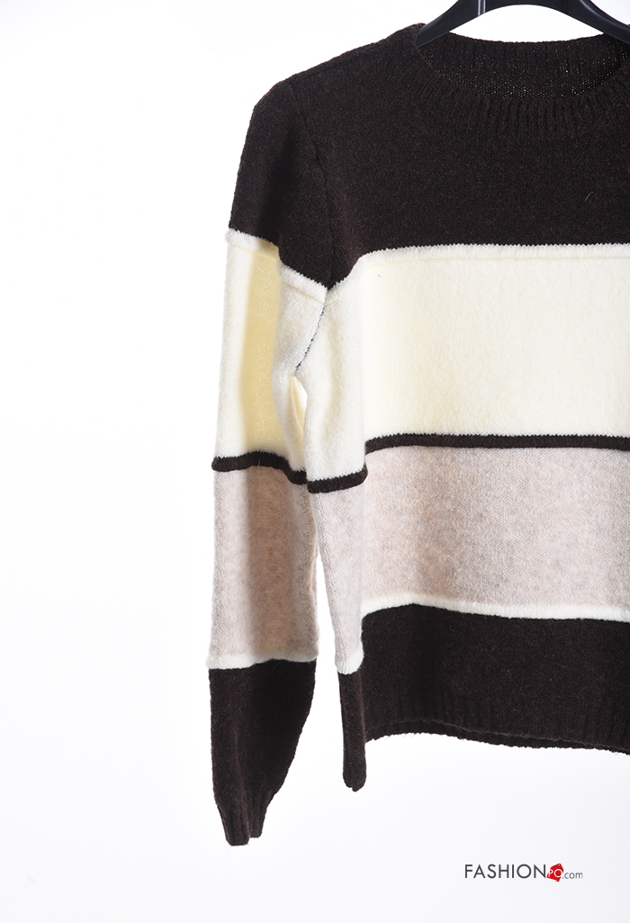 Home > Brands > ANGELA MODA > Striped long sleeve crew neck Wool Mix Sweater