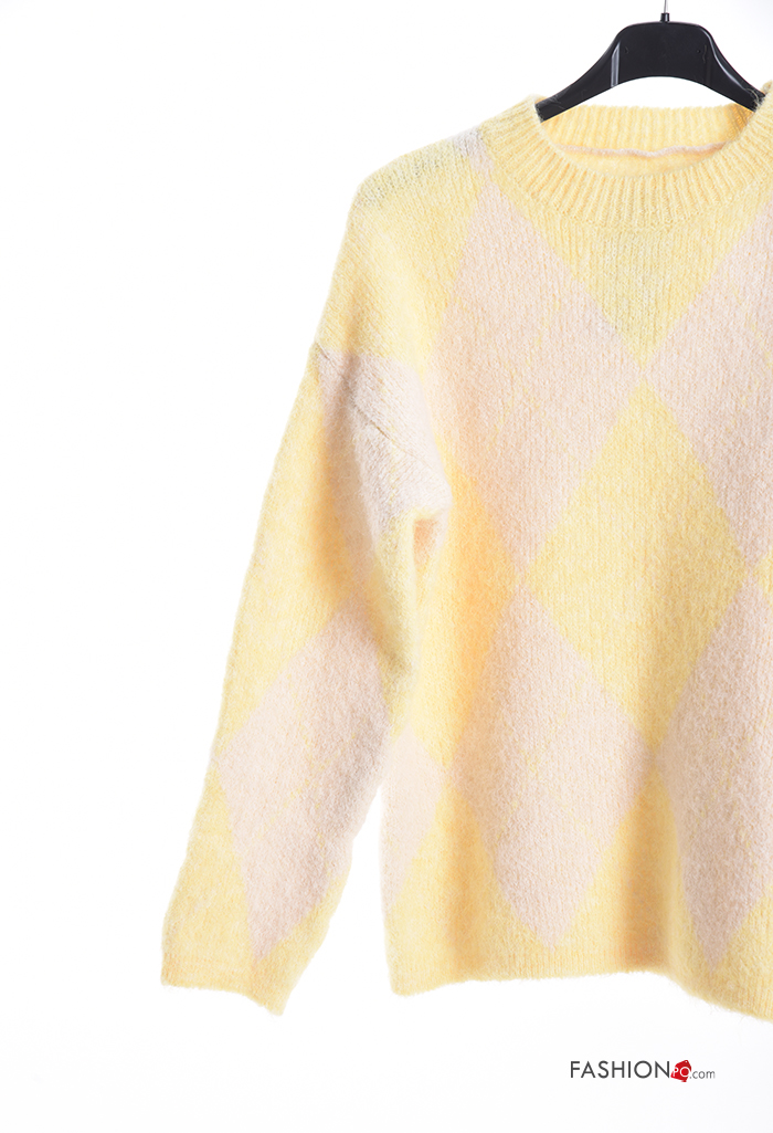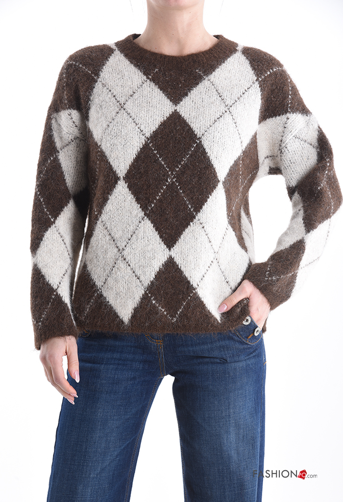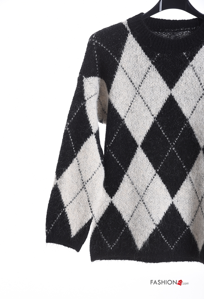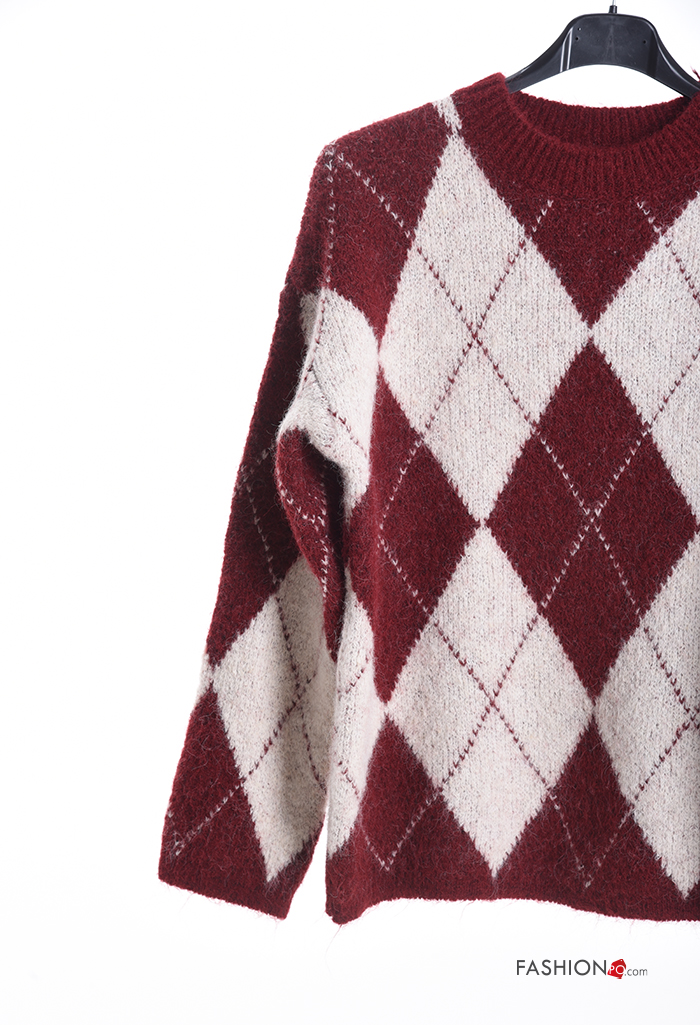 Home > Brands > ANGELA MODA > Geometric pattern long sleeve crew neck Wool Mix Sweater