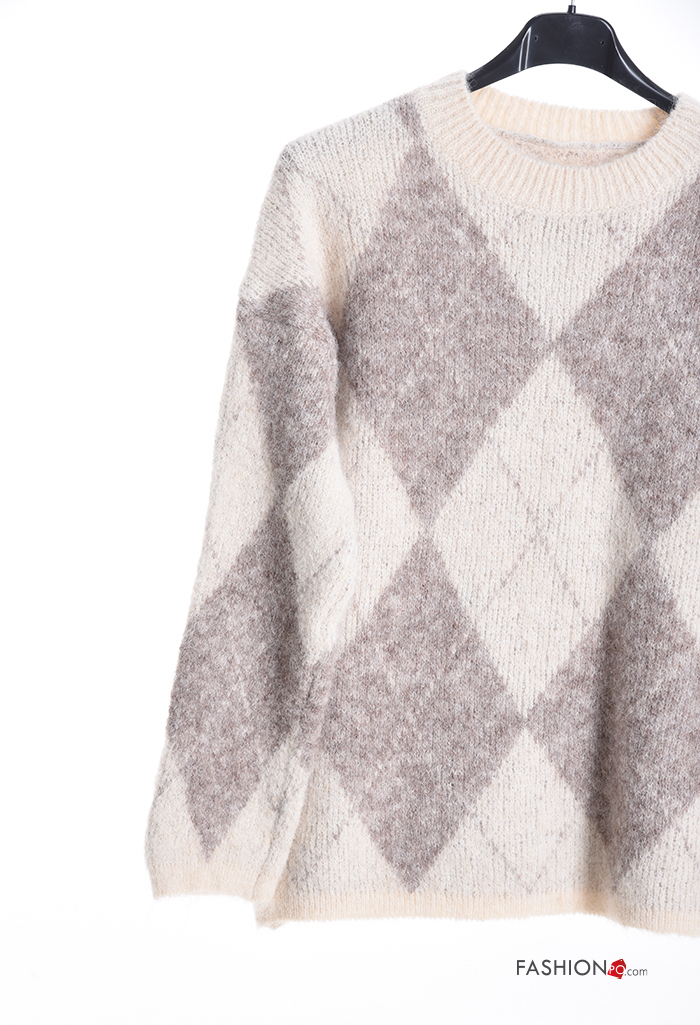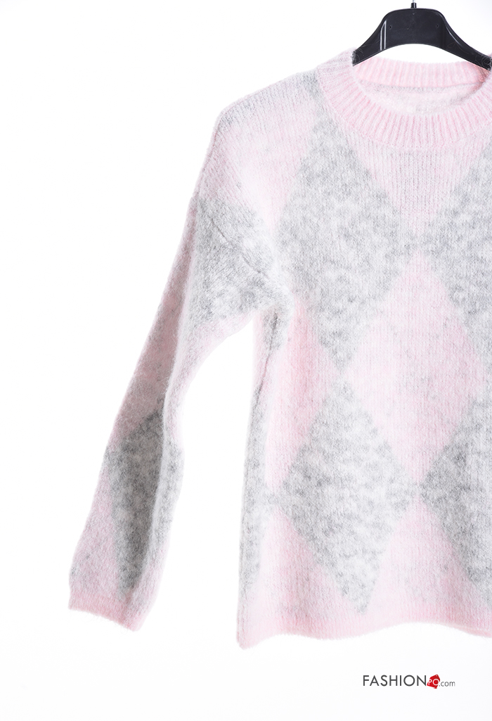 Geometric pattern long sleeve crew neck Wool Mix Sweater