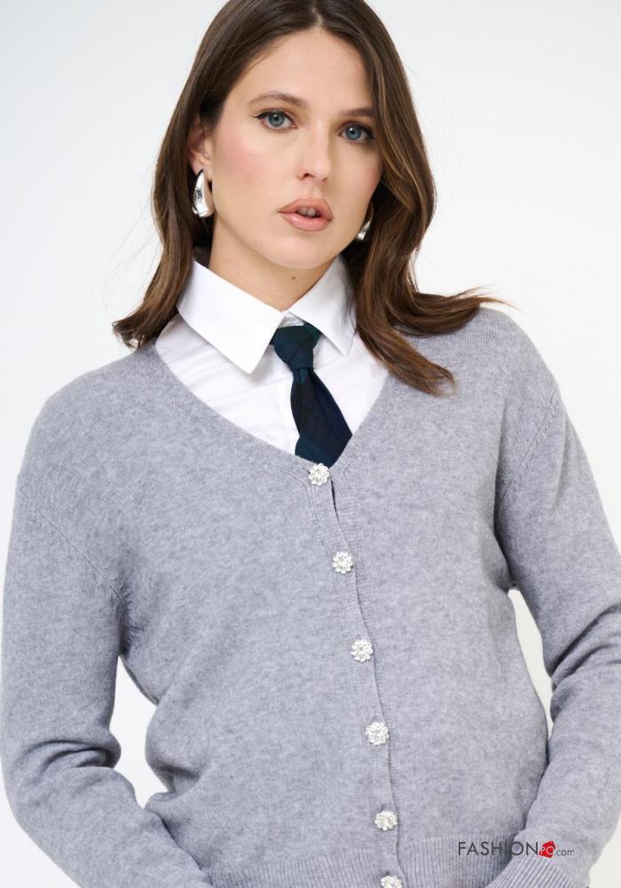 long sleeve Cardigan with buttons with rhinestones with v-neck