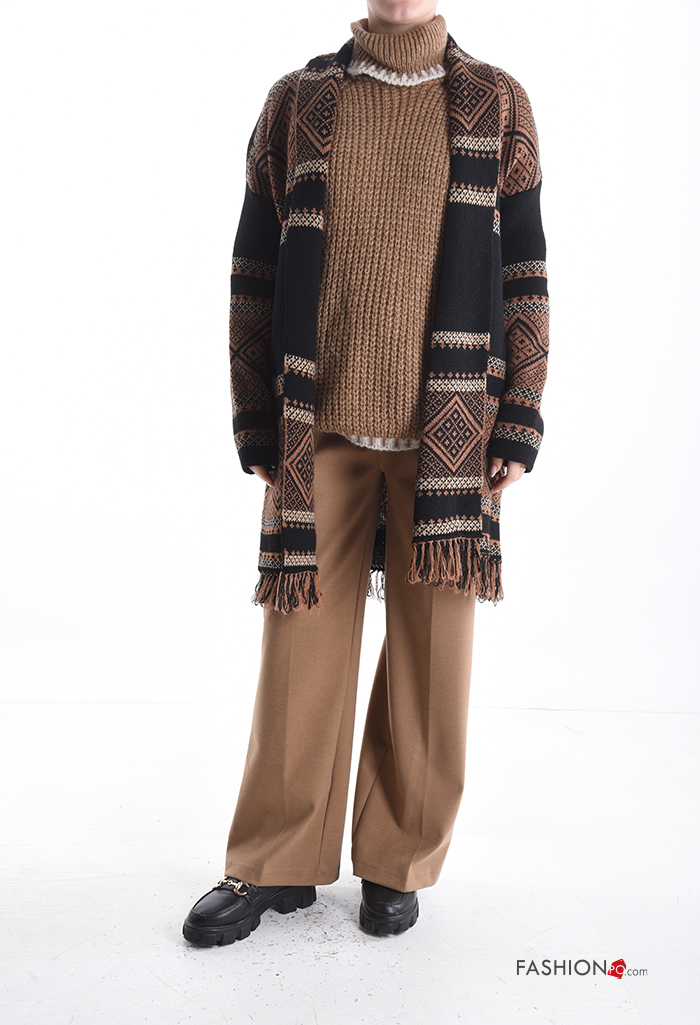 Home > Brands > GIOVANNI MODA > Geometric pattern long sleeve Coat with fringe