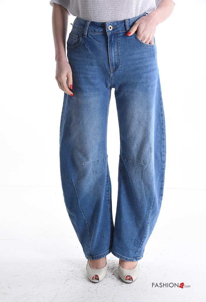 denim wide leg Cotton Jeans with buttons with zip with pockets