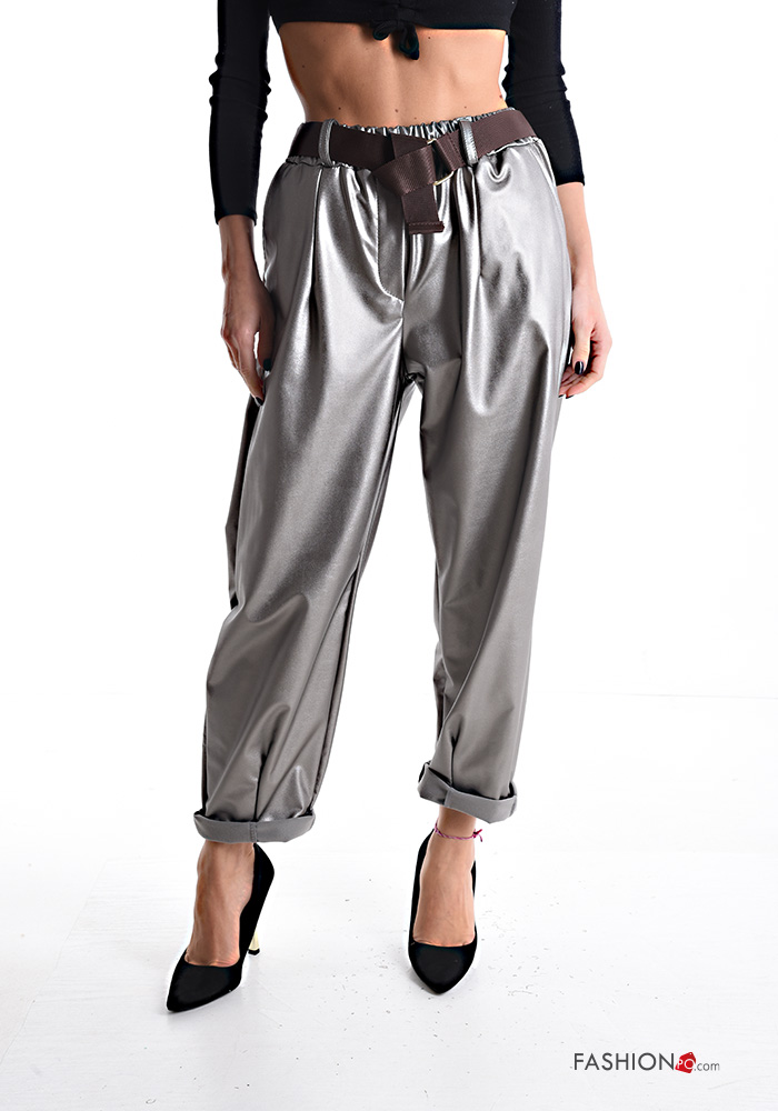 Home > Brands > LEDA MODA > metallic Trousers with belt with elastic with pockets