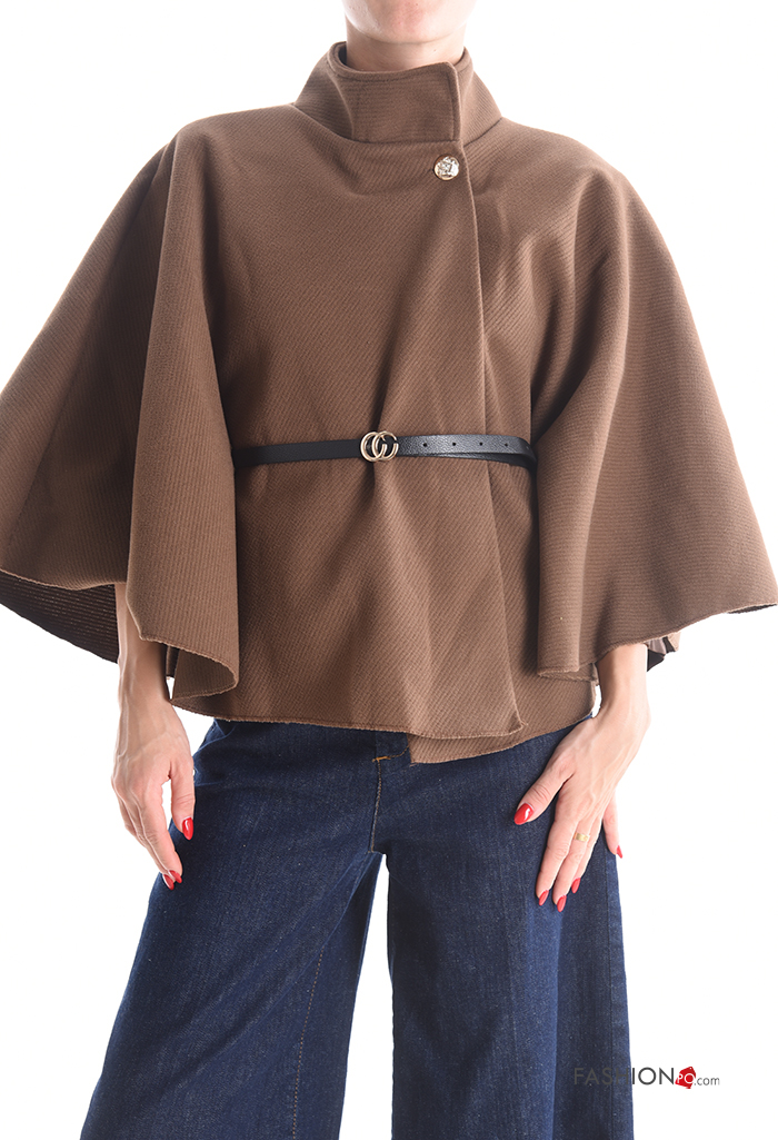 Cape 3/4 sleeve with buttons with belt Rollneck