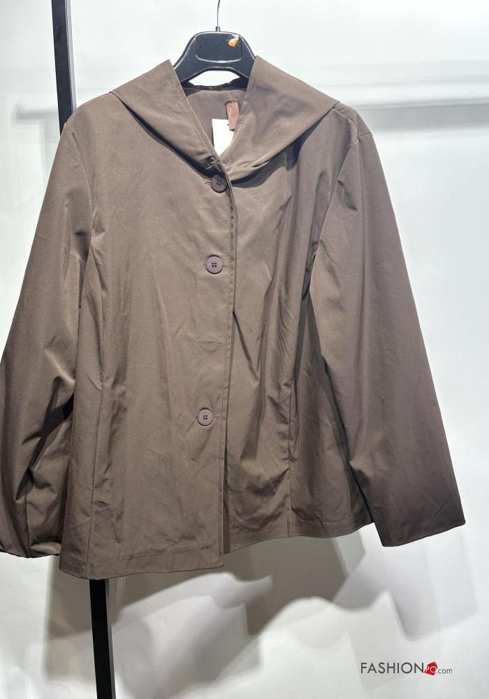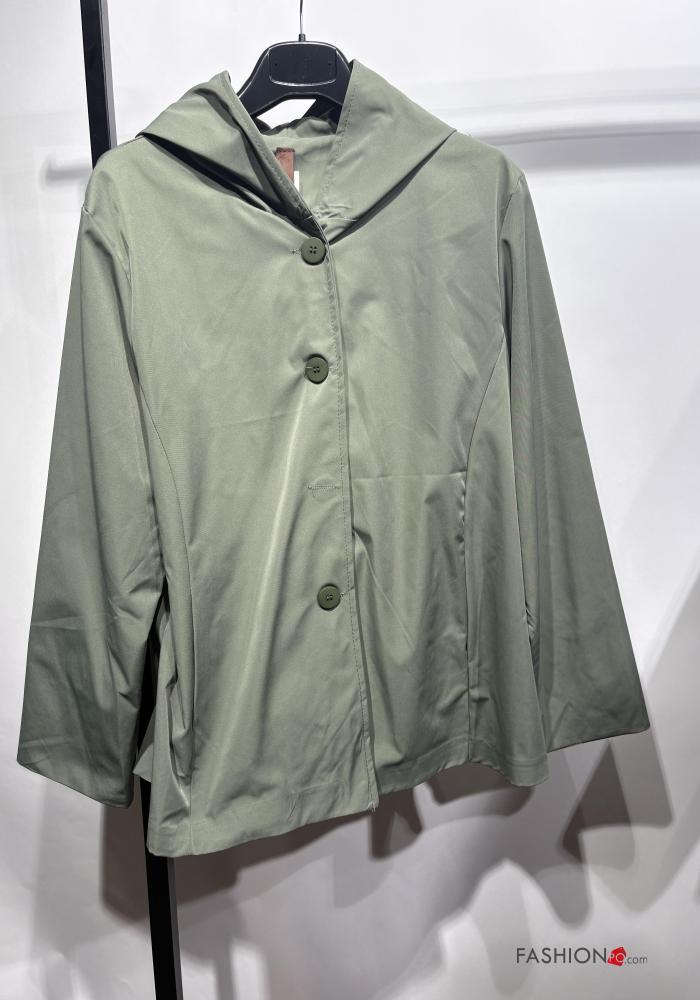 long sleeve Jacket with buttons with hood with pockets