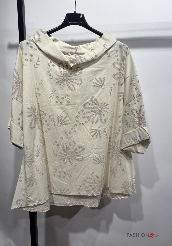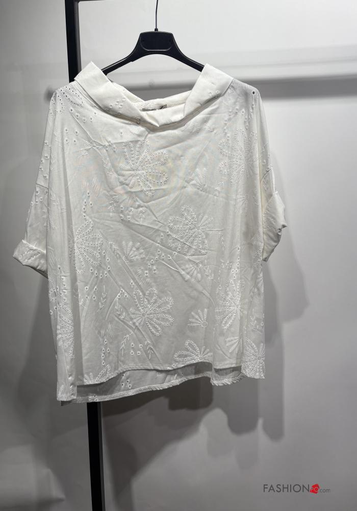 Embroidered long sleeve with collar Cotton Tunic broderie anglaise