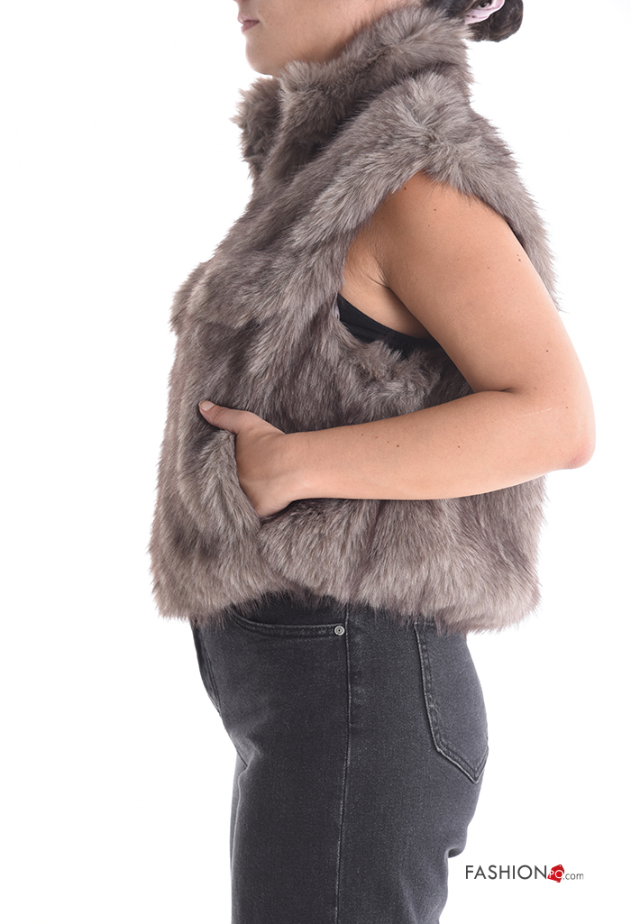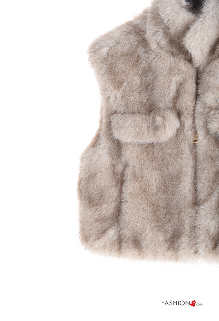 sleeveless Faux Fur Coat Rollneck with lining with pockets