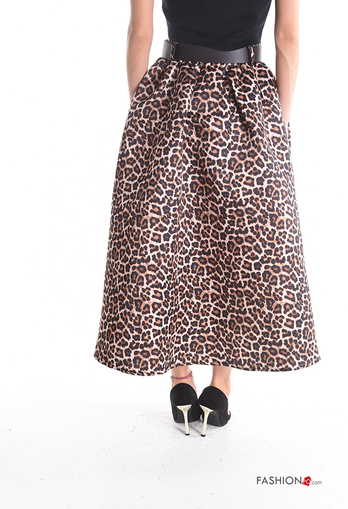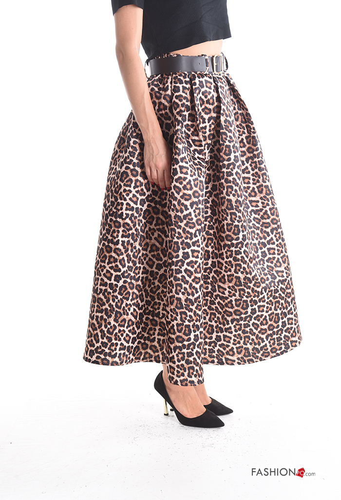 Home > Brands > SILVIA JEANS > Animal print high waist full Skirt with belt