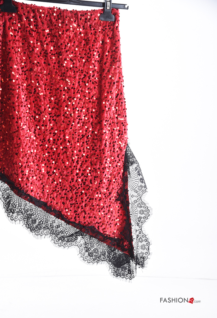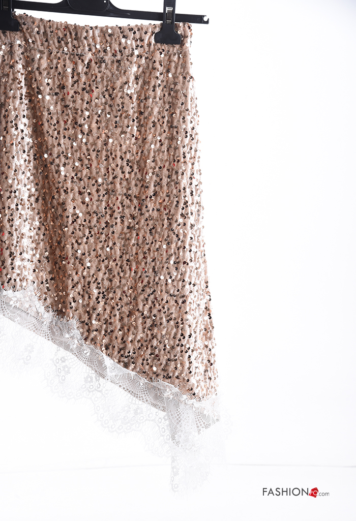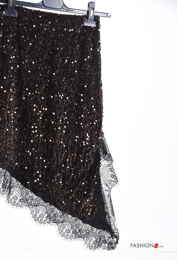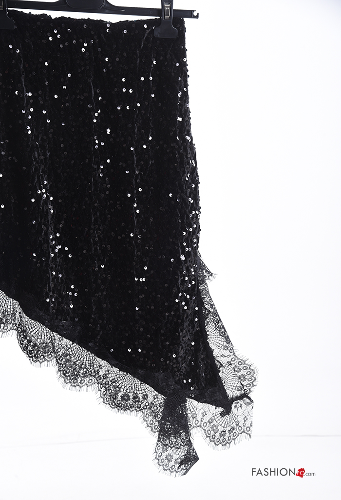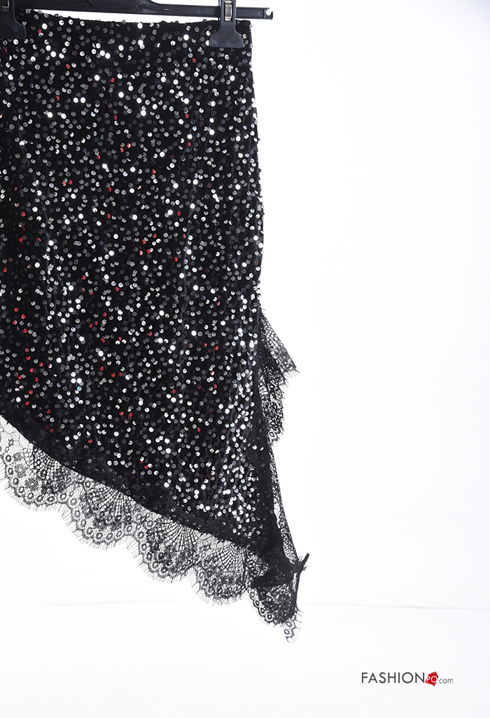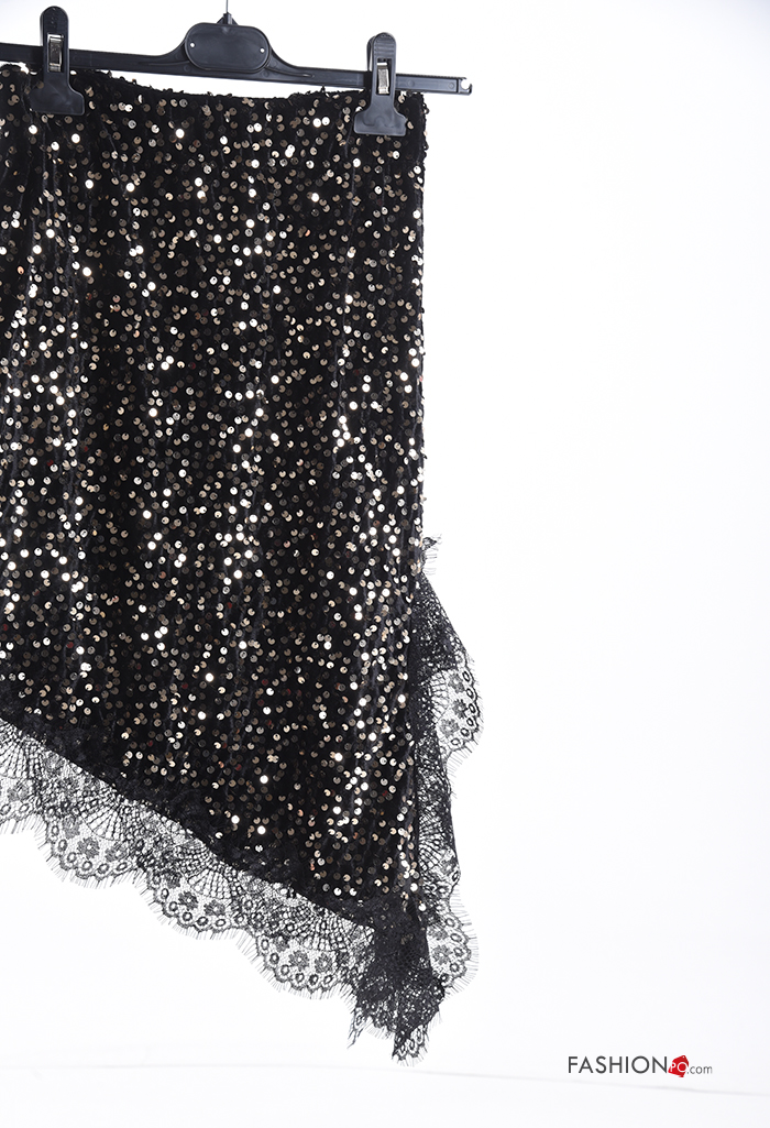 Home > Brands > SILVIA JEANS > lace trim asymmetrical Skirt with elastic with split with sequins