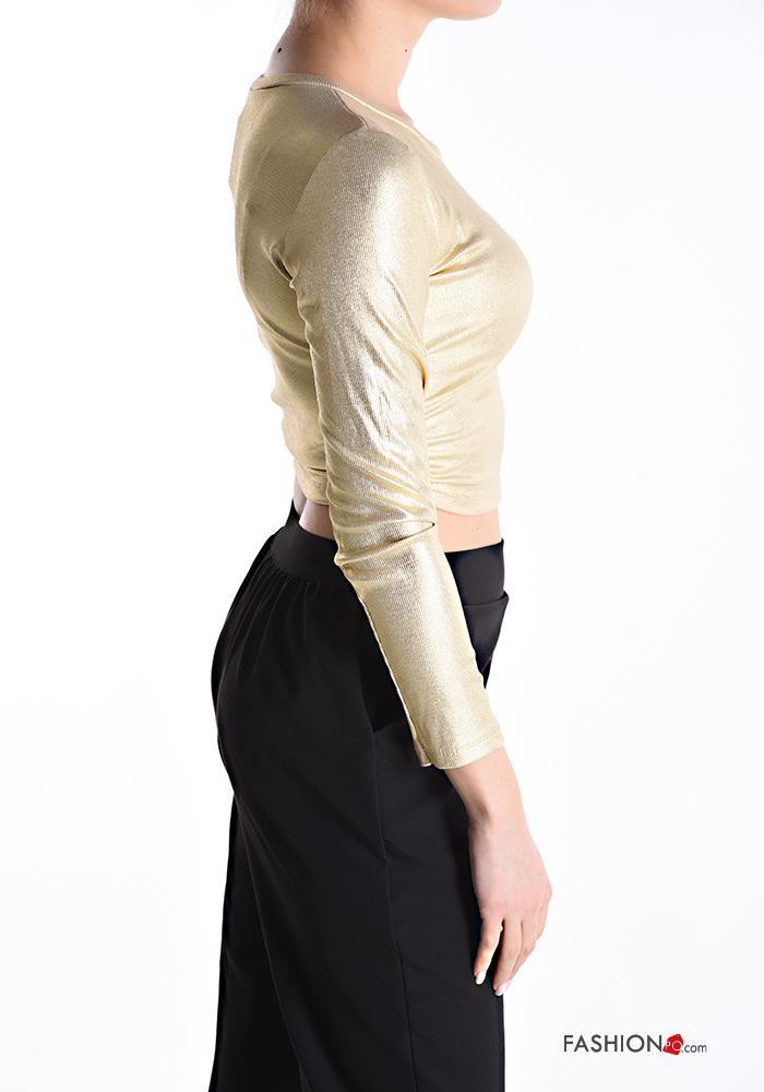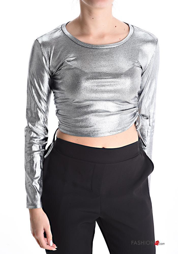 Home > Brands > ZHIMIAO MODA > long sleeve crew neck metallic Top with drawstring