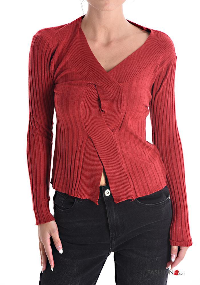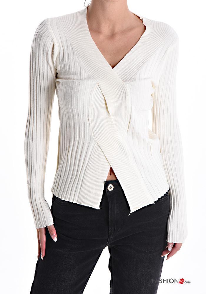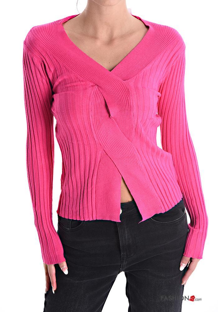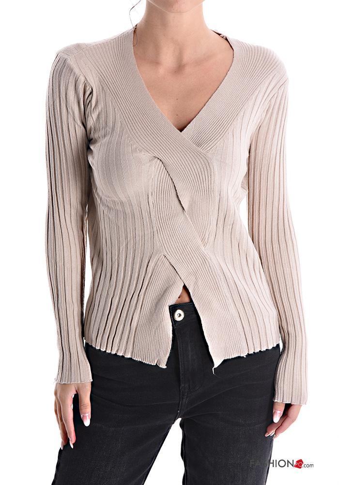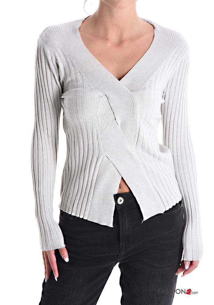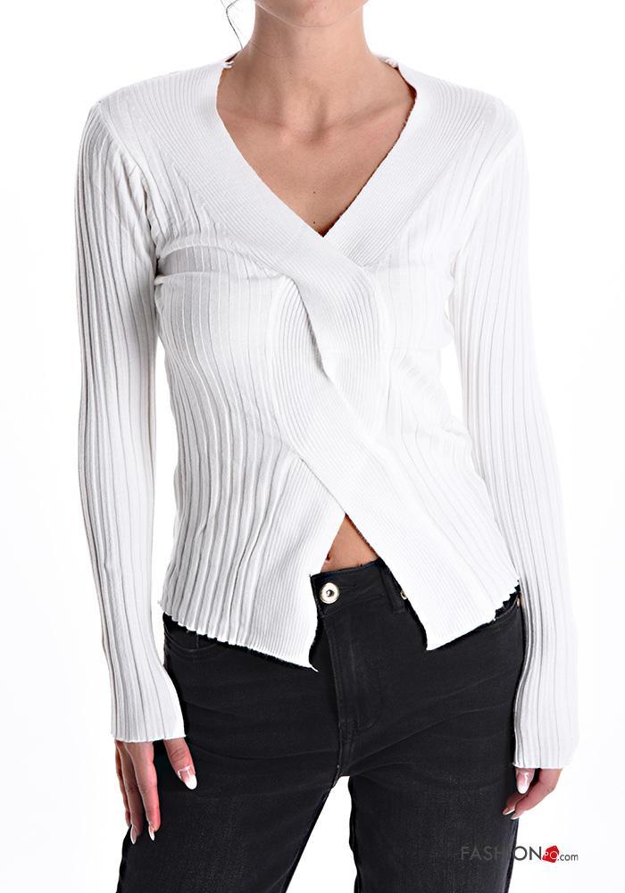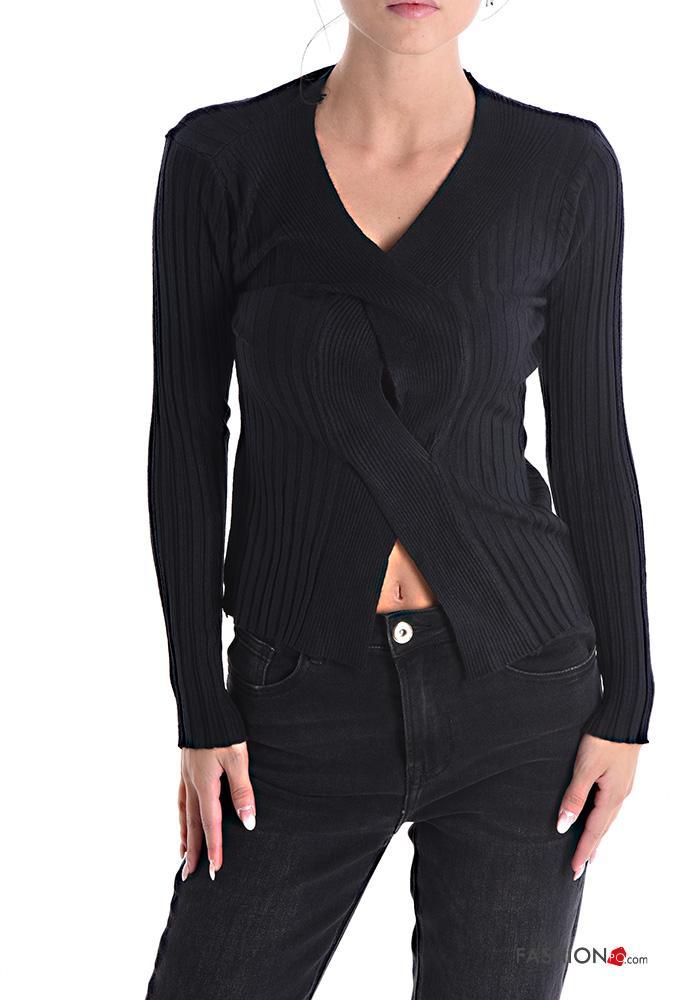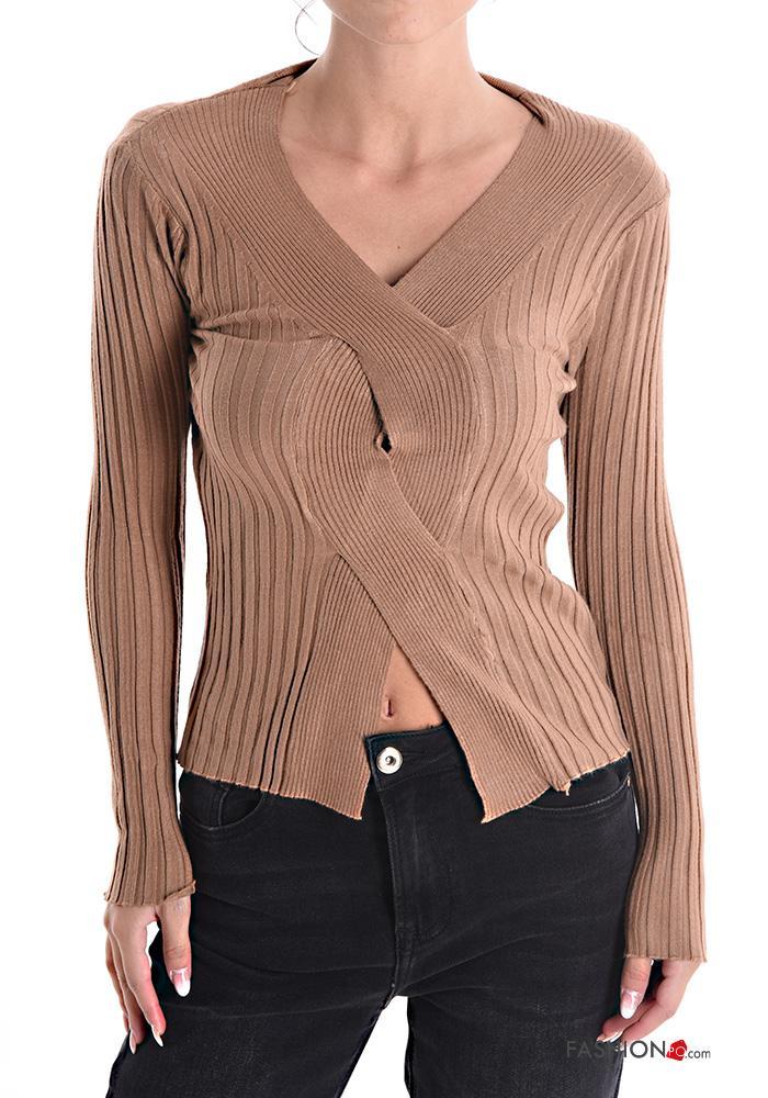 Home > Brands > ZHIMIAO MODA > Ribbed long sleeve Sweater with v-neck with knot