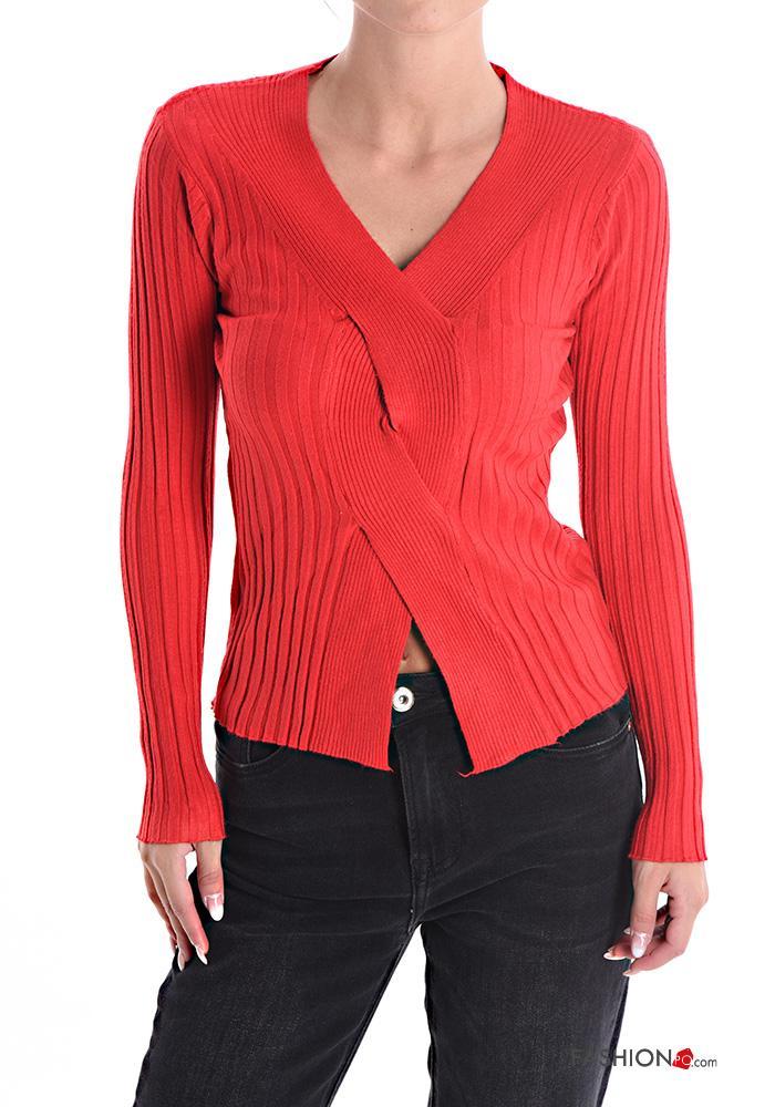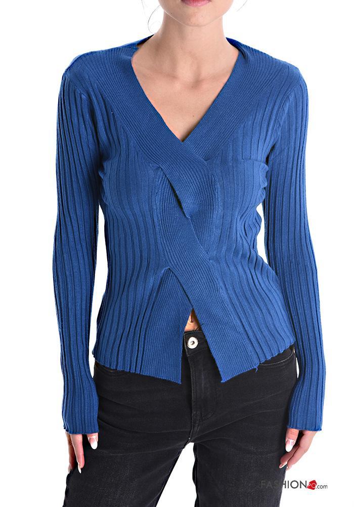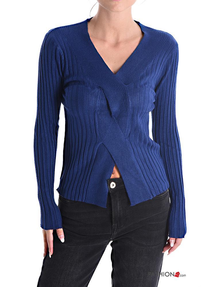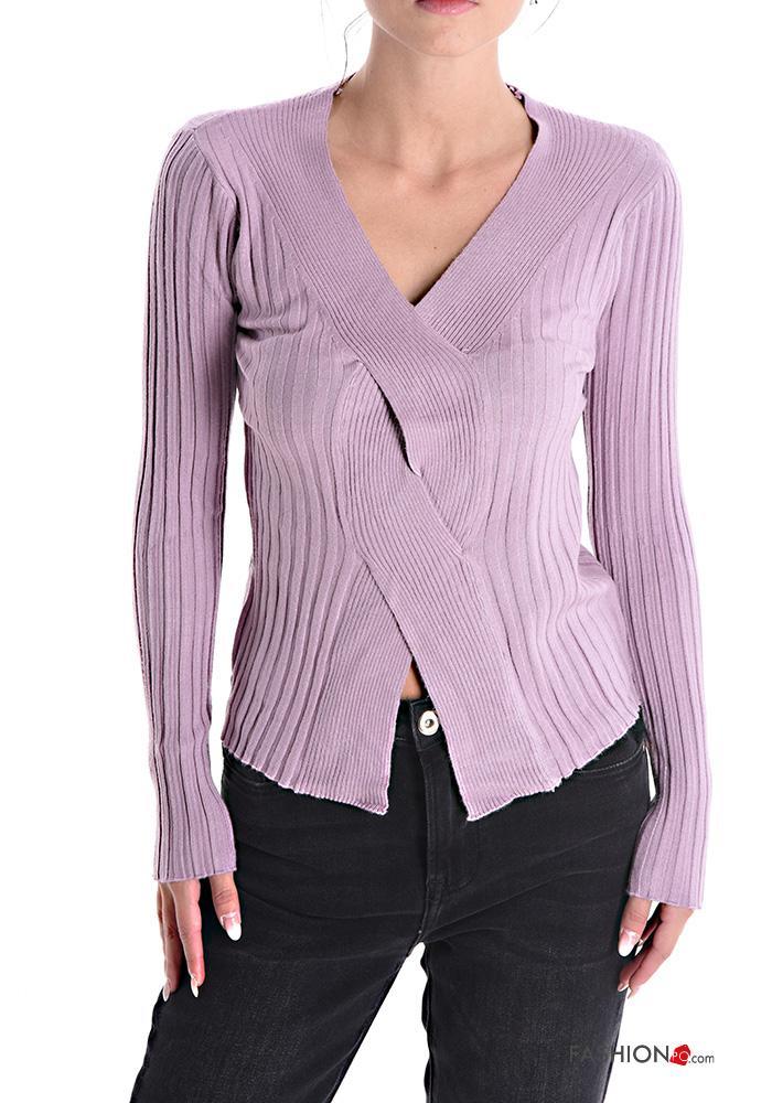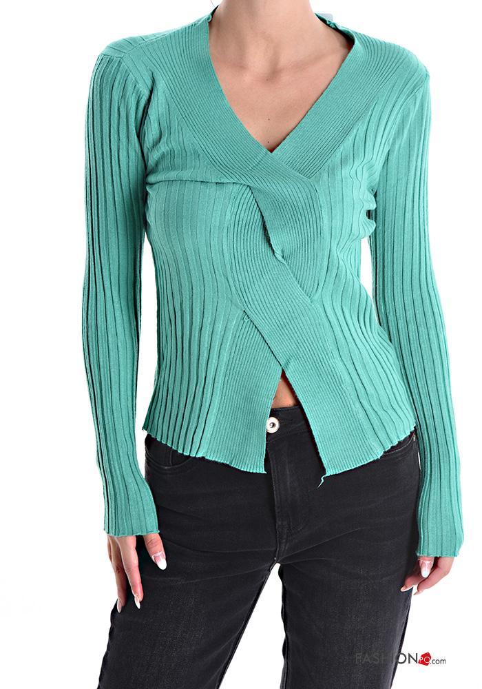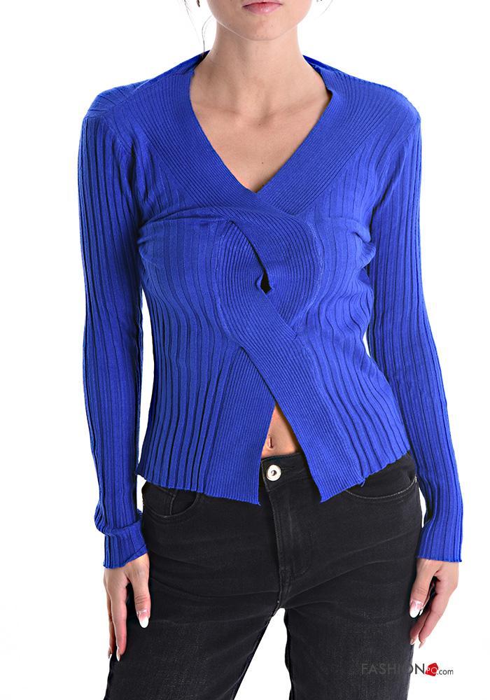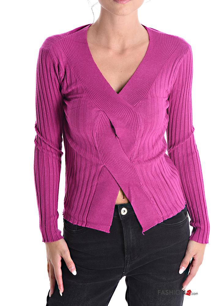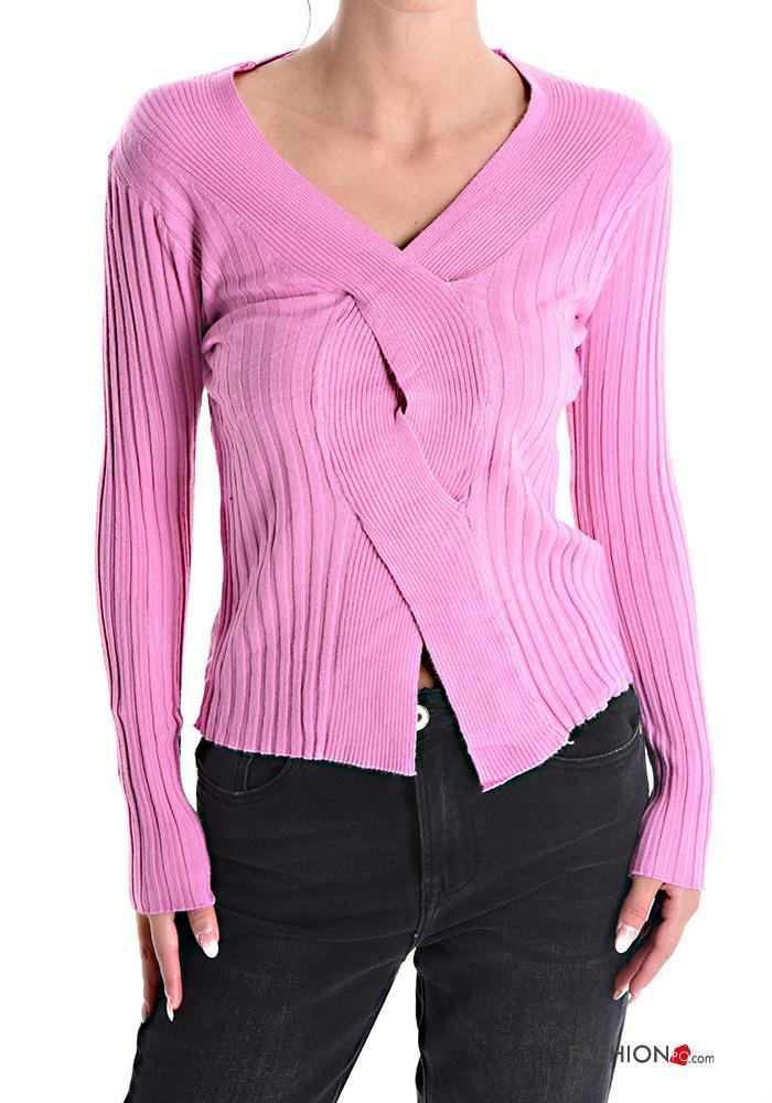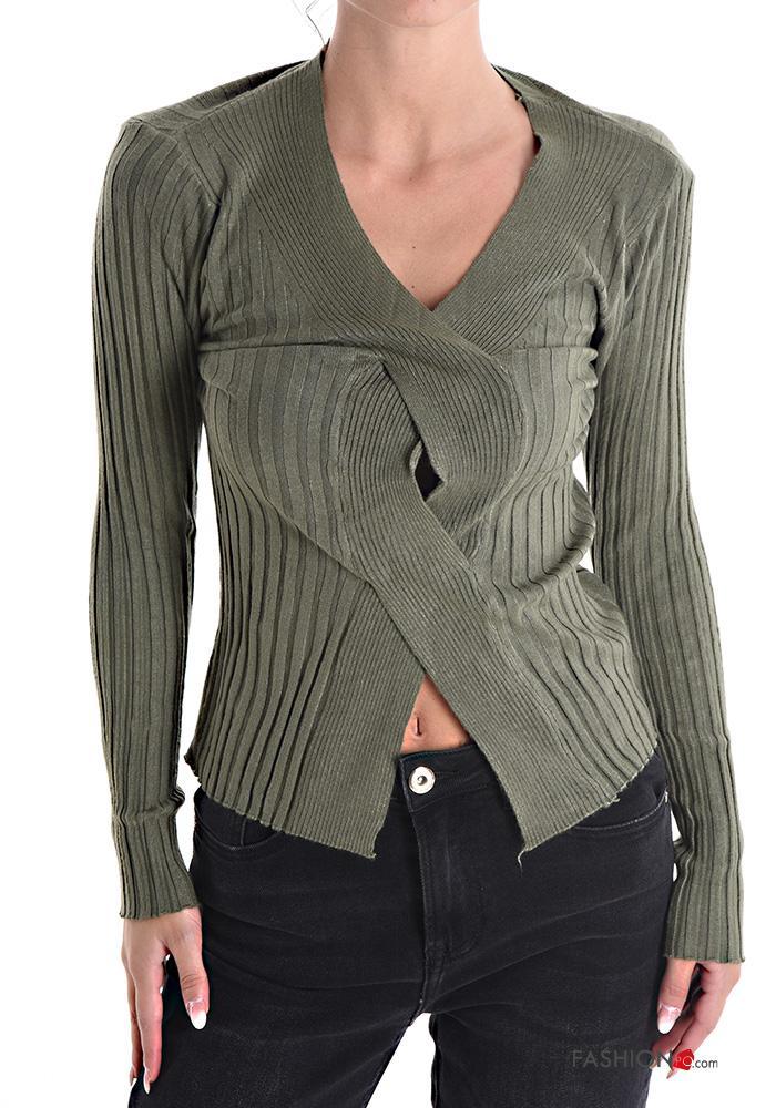 Home > Brands > ZHIMIAO MODA > Ribbed long sleeve Sweater with v-neck with knot