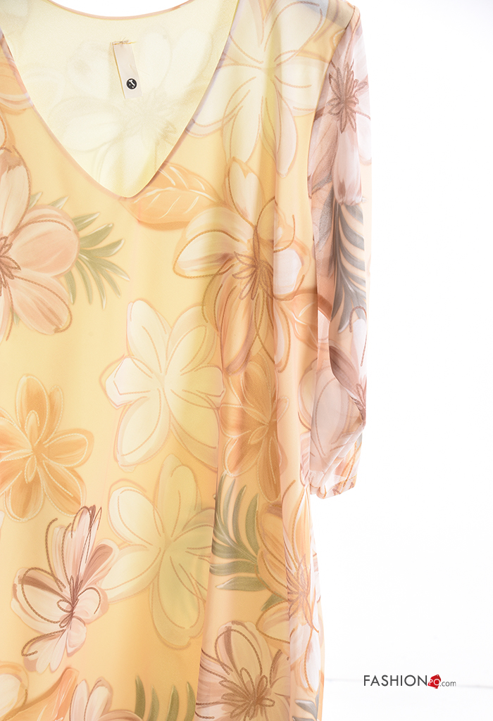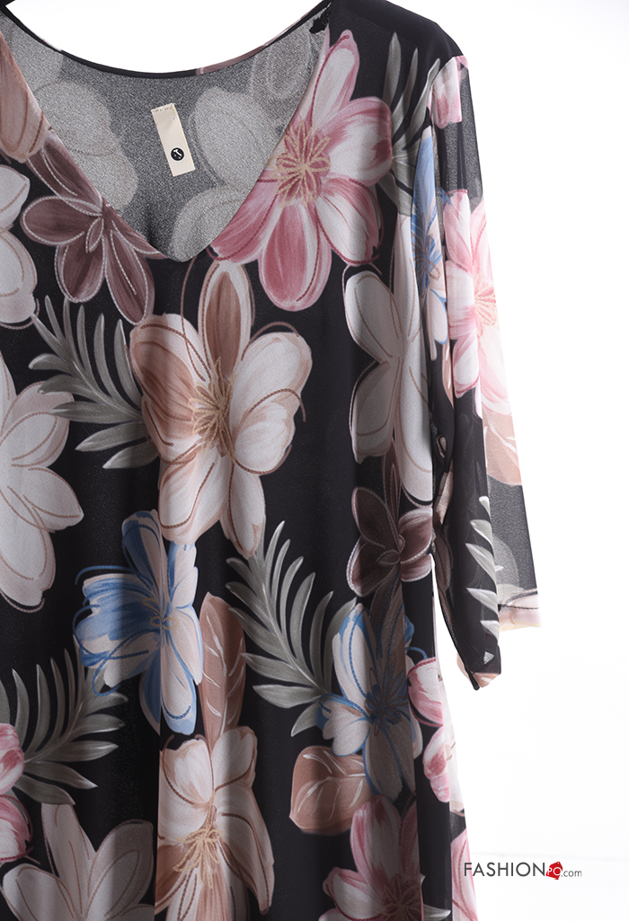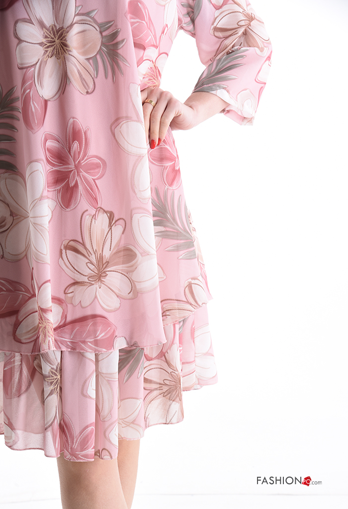 Floral Dress with v-neck 3/4 sleeve