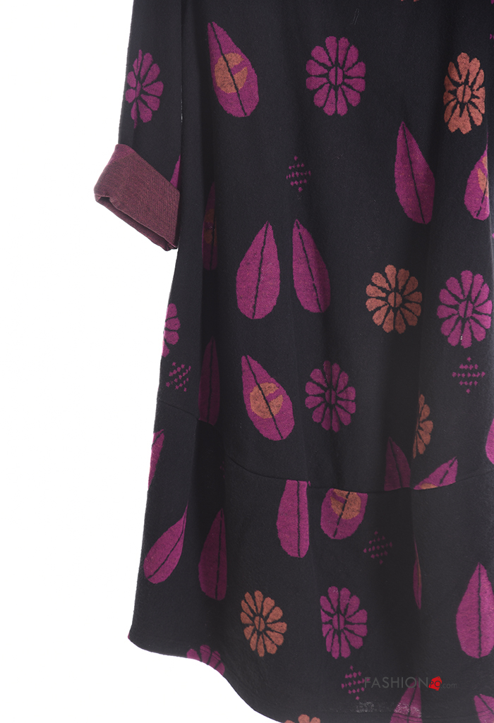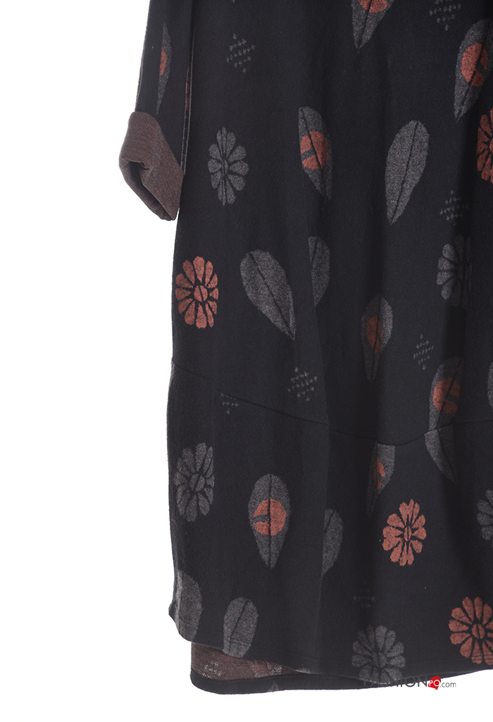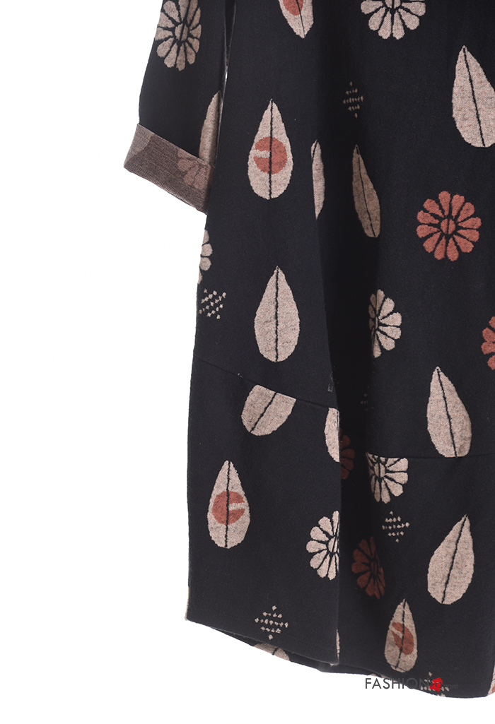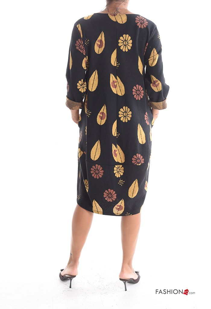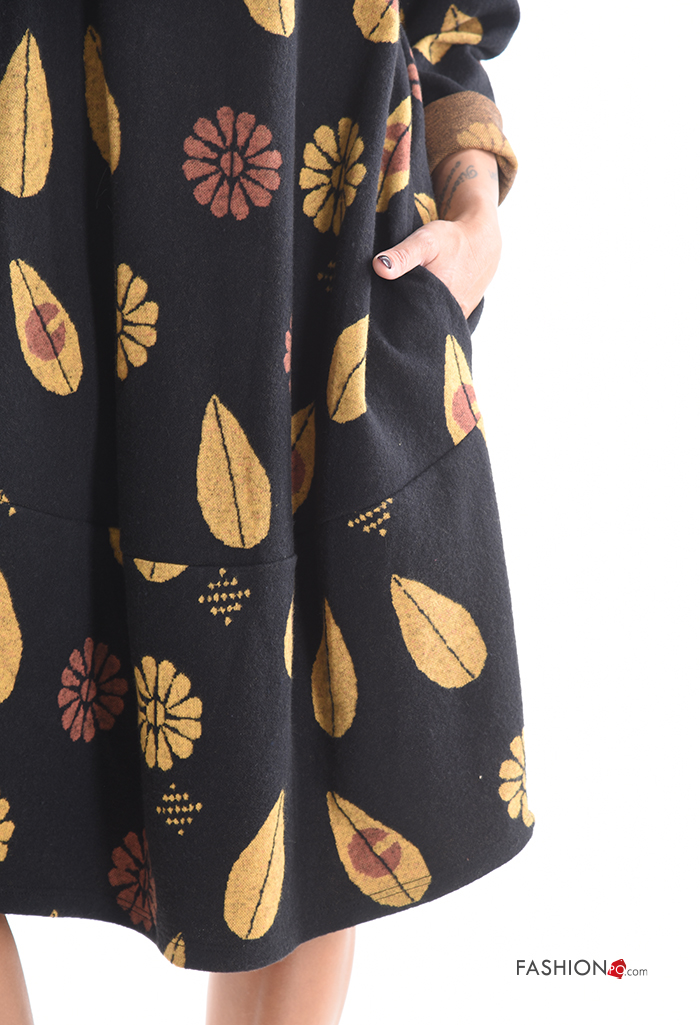 long sleeve crew neck Cotton Dress with pockets