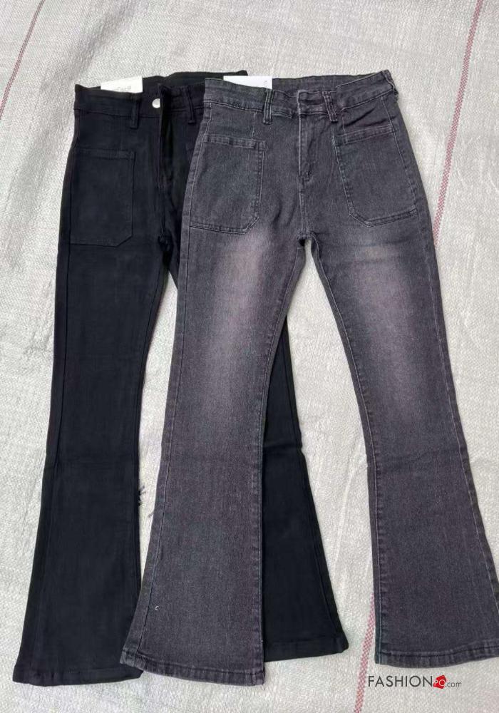 Home > Clothing > Jeans > flared Cotton Jeans with buttons with zip with pockets
