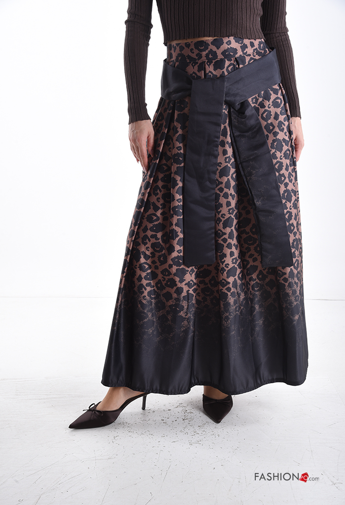 Animal print Skirt with bow with fabric belt