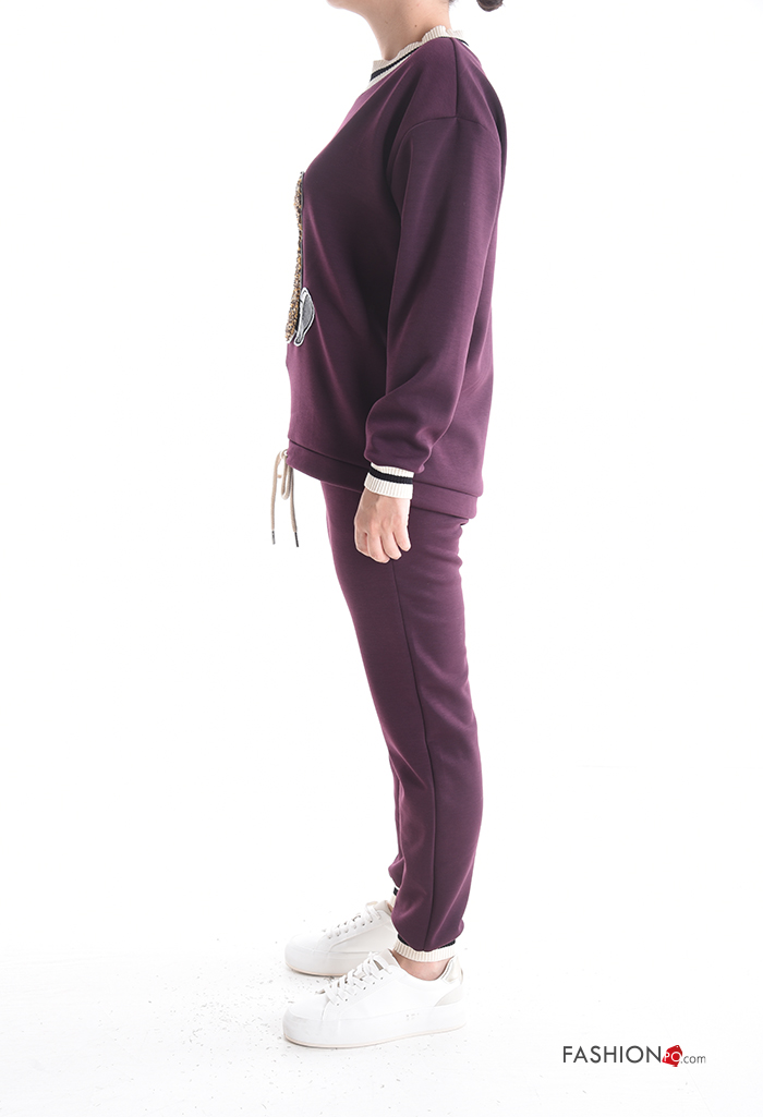 Home > Clothing > Sportswear > Animal motif long sleeve crew neck Sports set with pockets with elastic