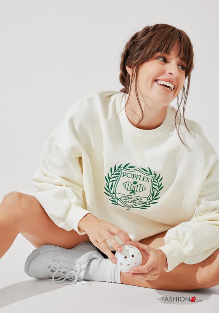 Embroidered crew neck POPFLEX oversized Cotton Sweatshirt with pockets