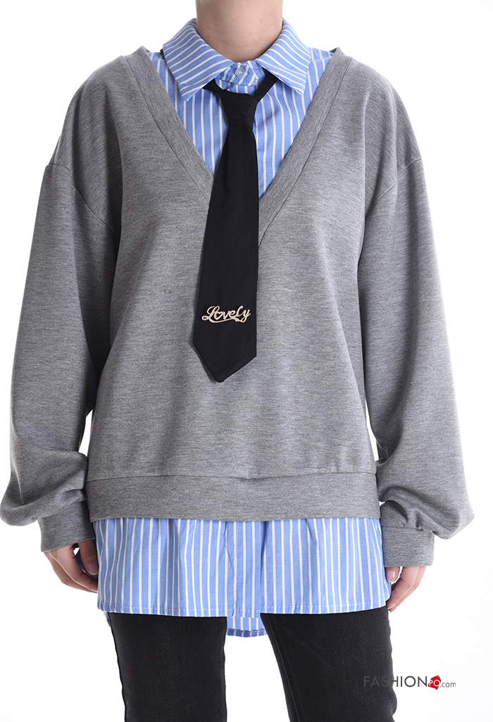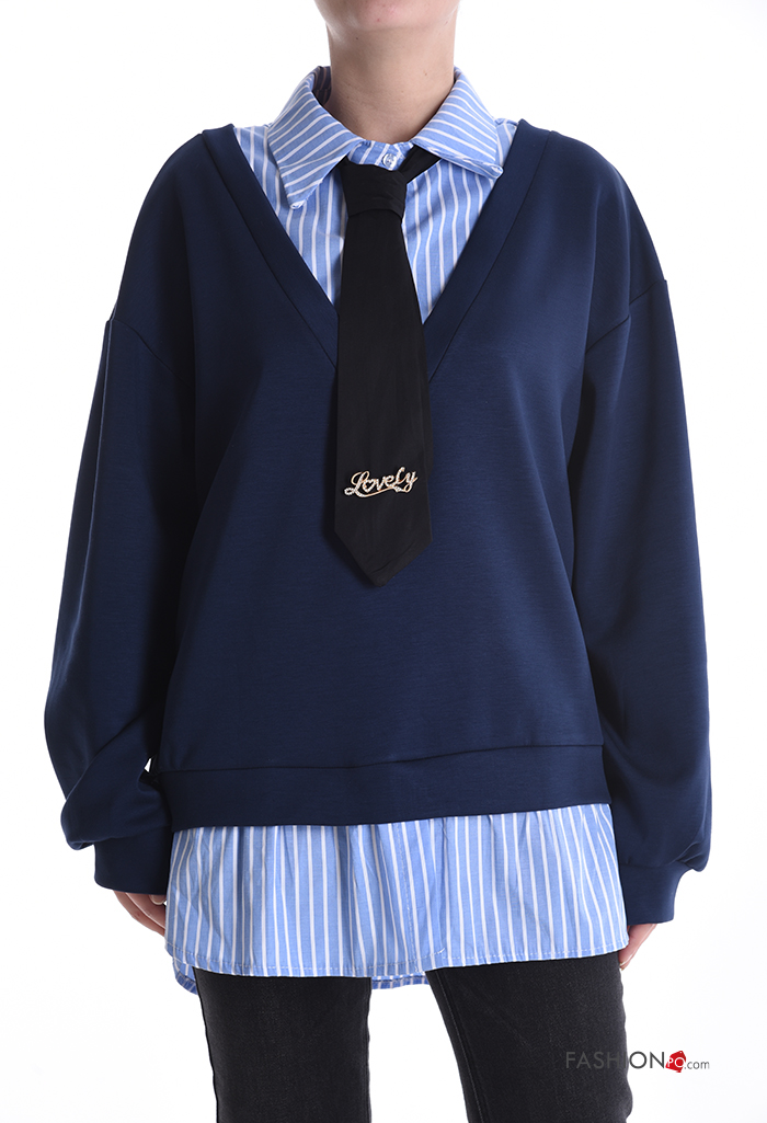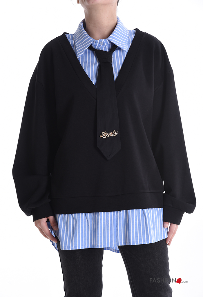 Home > Clothing > Sportswear > Striped long sleeve with collar Sweatshirt with buttons