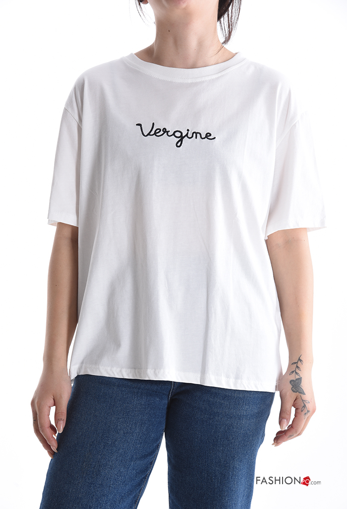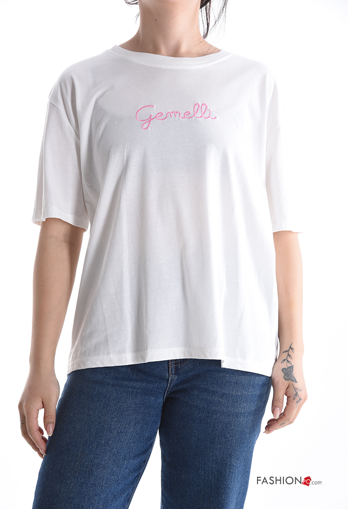 Home > Clothing > T-shirts & Tops > Lettering print short sleeve crew neck Cotton T-shirt