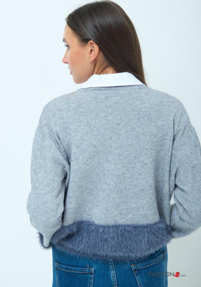 Home > Clothing > Knitwear & Cardigans > long sleeve crew neck faux fur Sweater