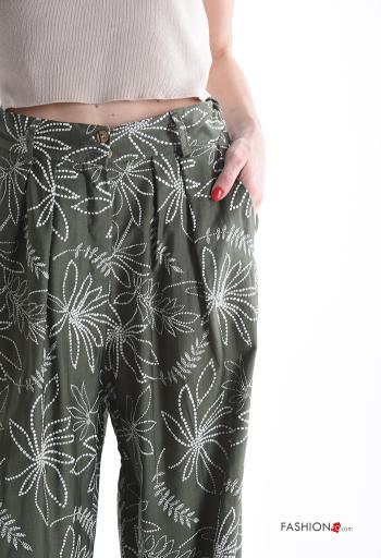 Home > Brands > GIOVANNI MODA > Pantalones wide leg Patrón bordado con bolsillos con cremallera con botones
