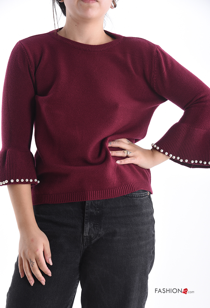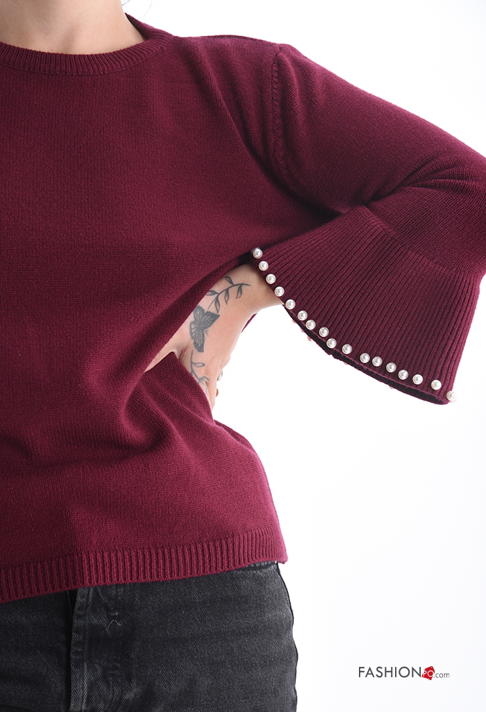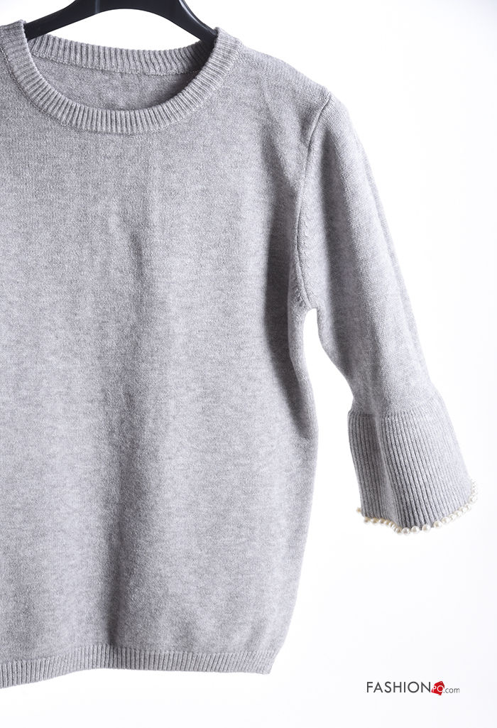 Home > Ropa > Jerséis y Cárdigans > Jersey cuello redondo con perlas manga tres cuartos