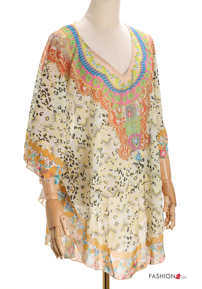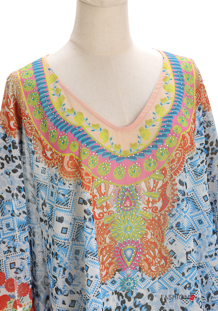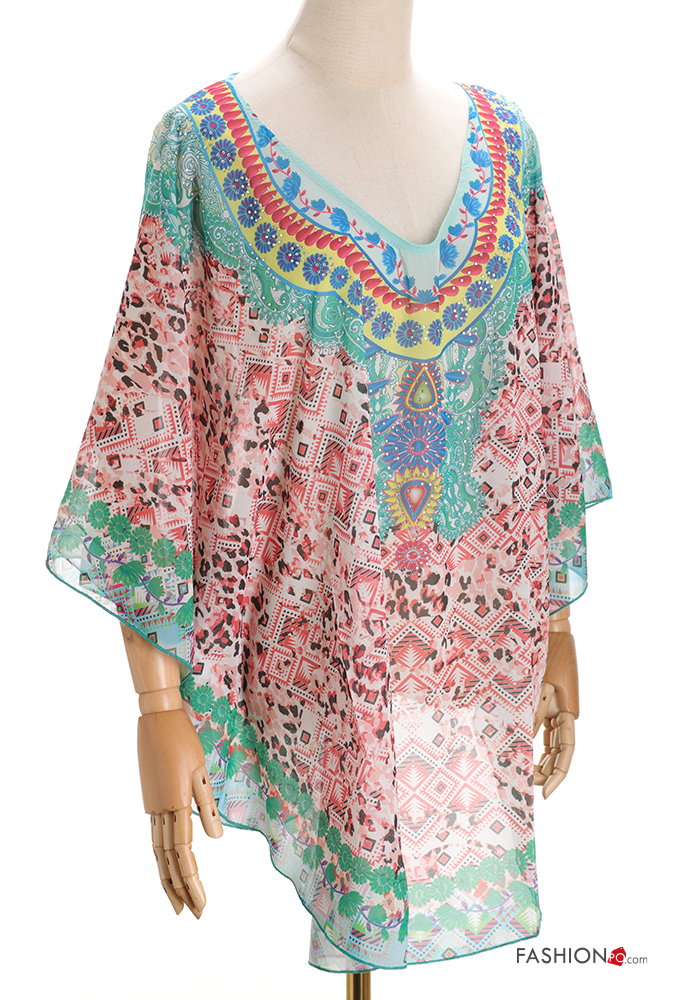 Home > Ropa > Trajes de Baño y Vestidos de Playa > Vestido playero Estampado Geométrico con cuello en v manga tres cuartos