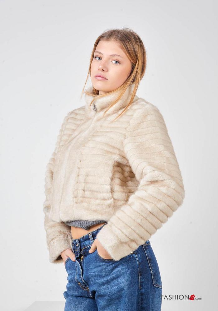 Manteau en Fausse Fourrure manches longues à col roulé avec fermeture éclair