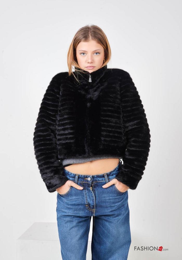 Home > Vêtements > Manteaux & Vestes > Manteau en Fausse Fourrure manches longues à col roulé avec fermeture éclair