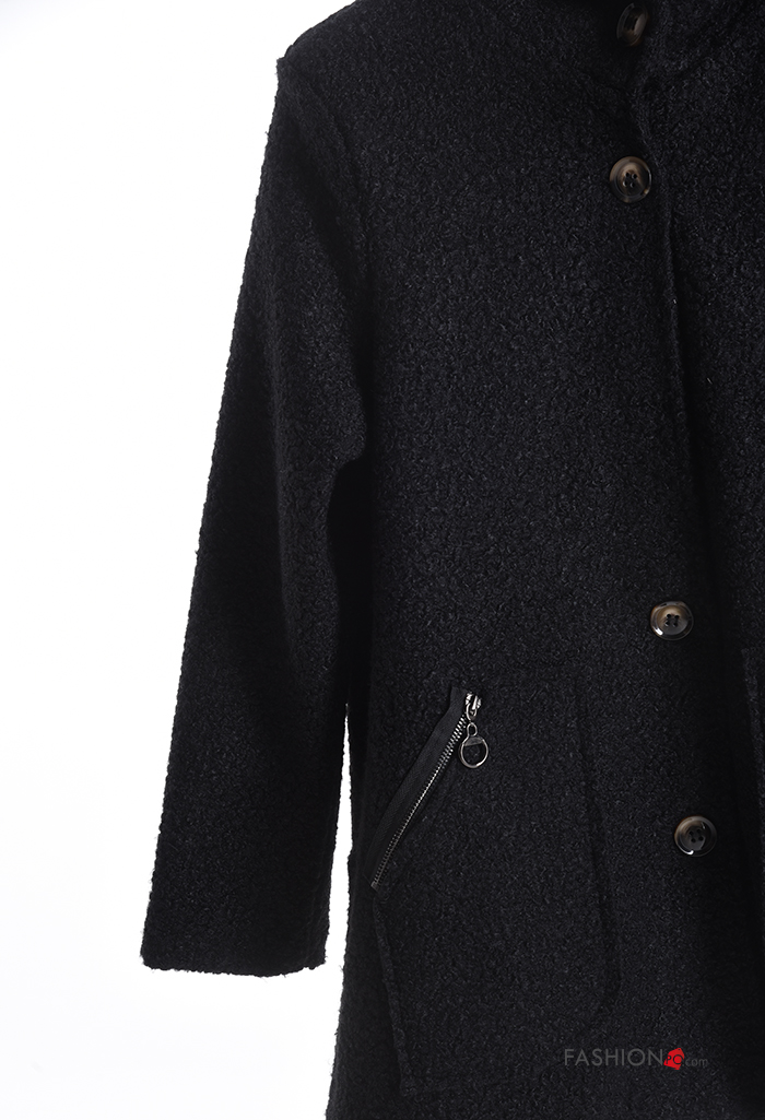 Manteau manches longues sans doublure à capuche avec poches à boutons