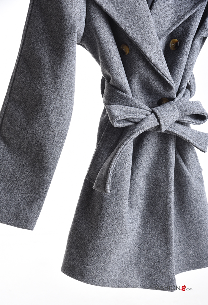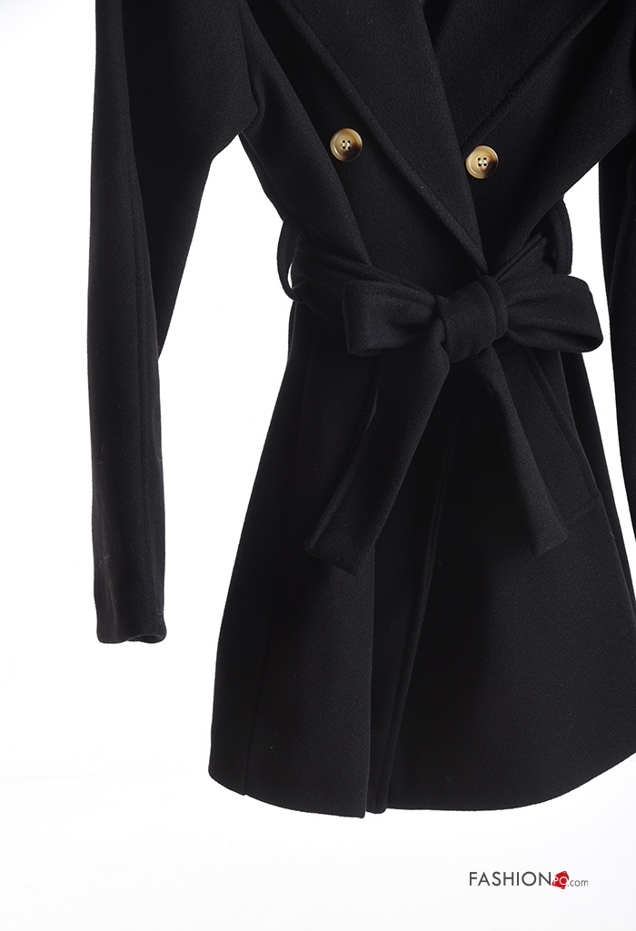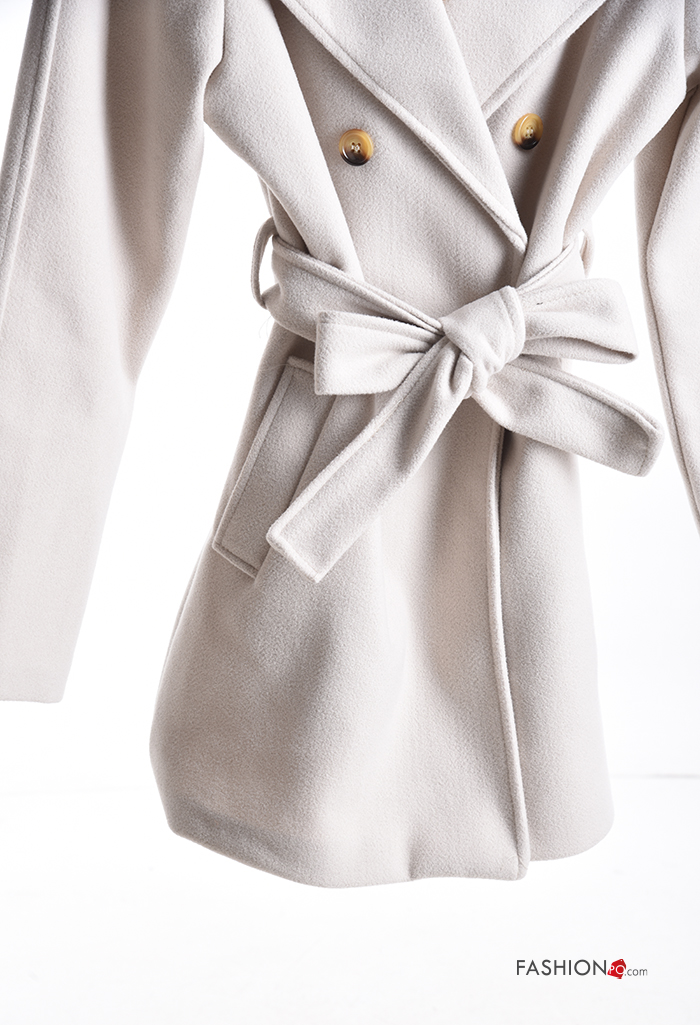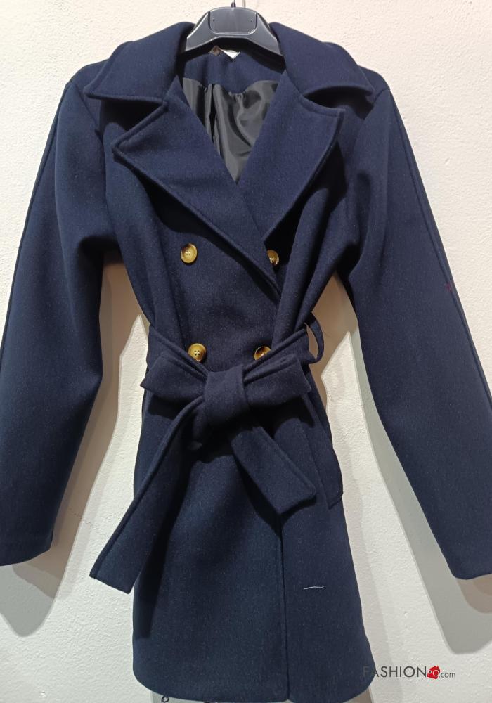 Manteau croisé courte avec poches avec doublure avec ceinture